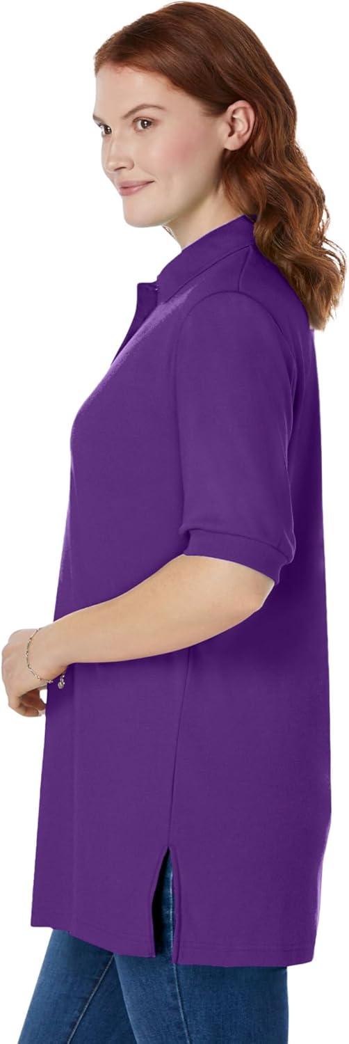 Woman Within Plus Size Elbow-Sleeve Polo Tunic(Purple Orchid)