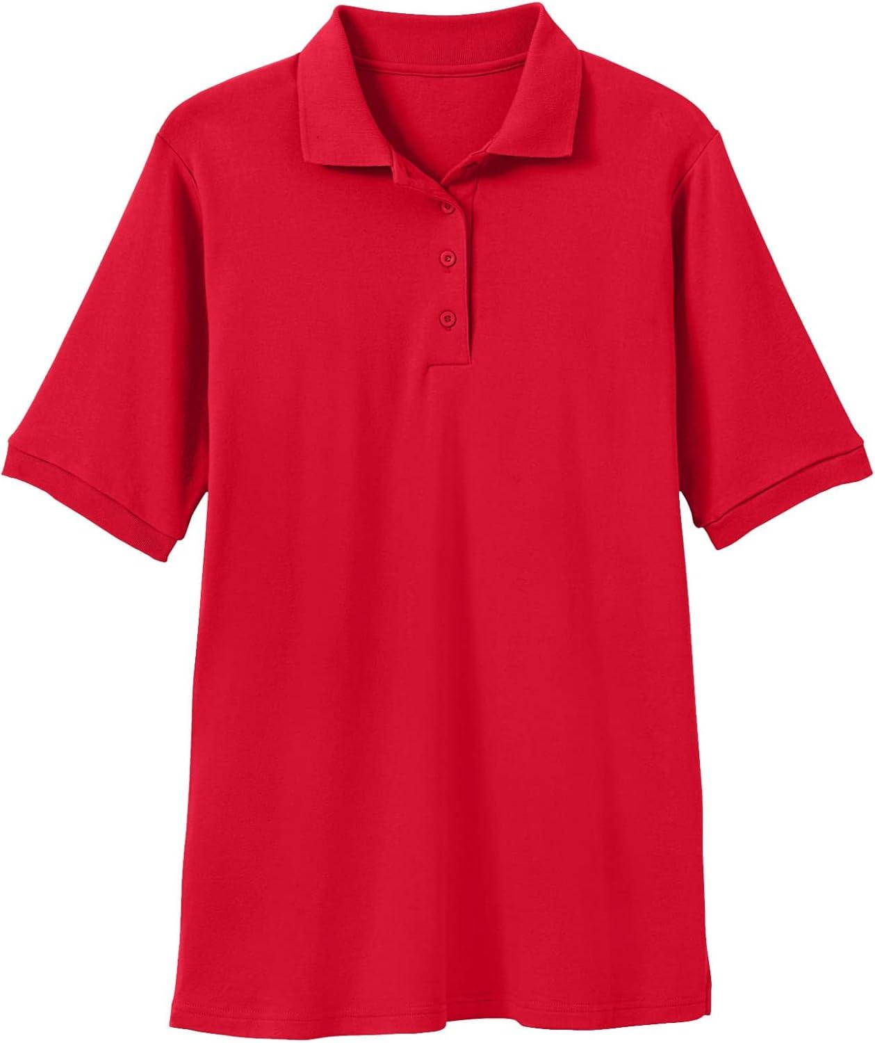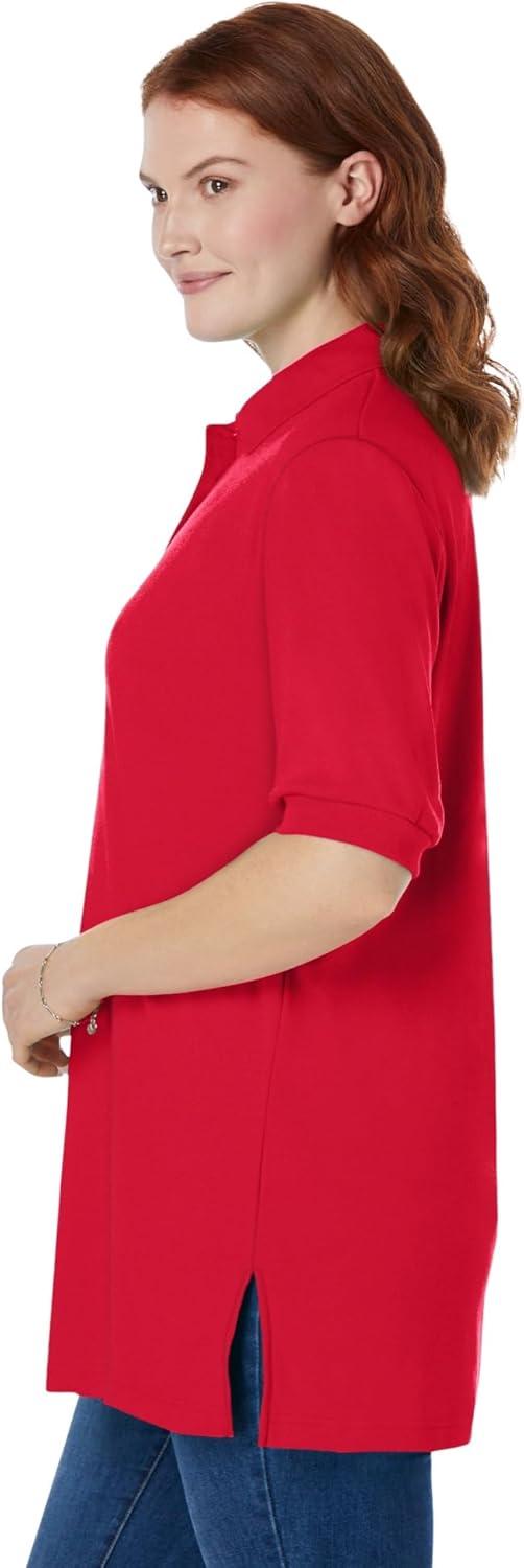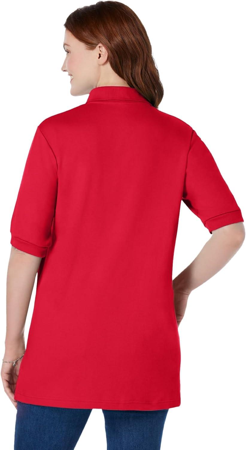 Woman Within Plus Size Elbow-Sleeve Polo Tunic(Vivid Red)