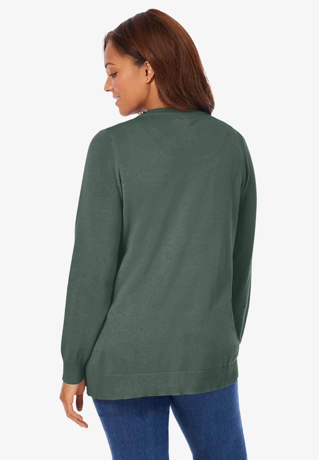 Woman Within Plus Size Perfect Long-Sleeve Cardigan(Pine)