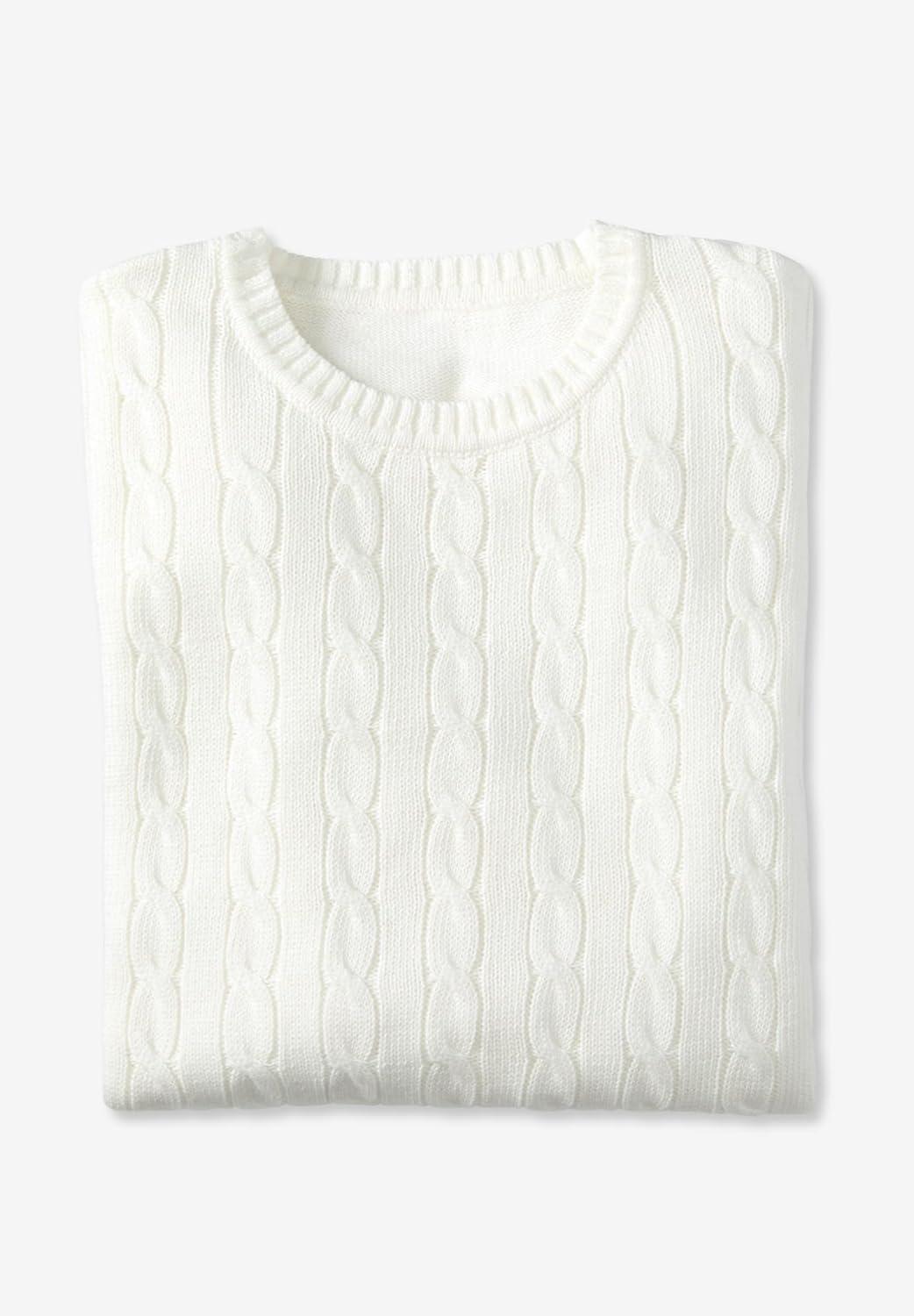 Woman Within Plus Size Cable Knit Pullover Crewneck Sweater(Ivory)