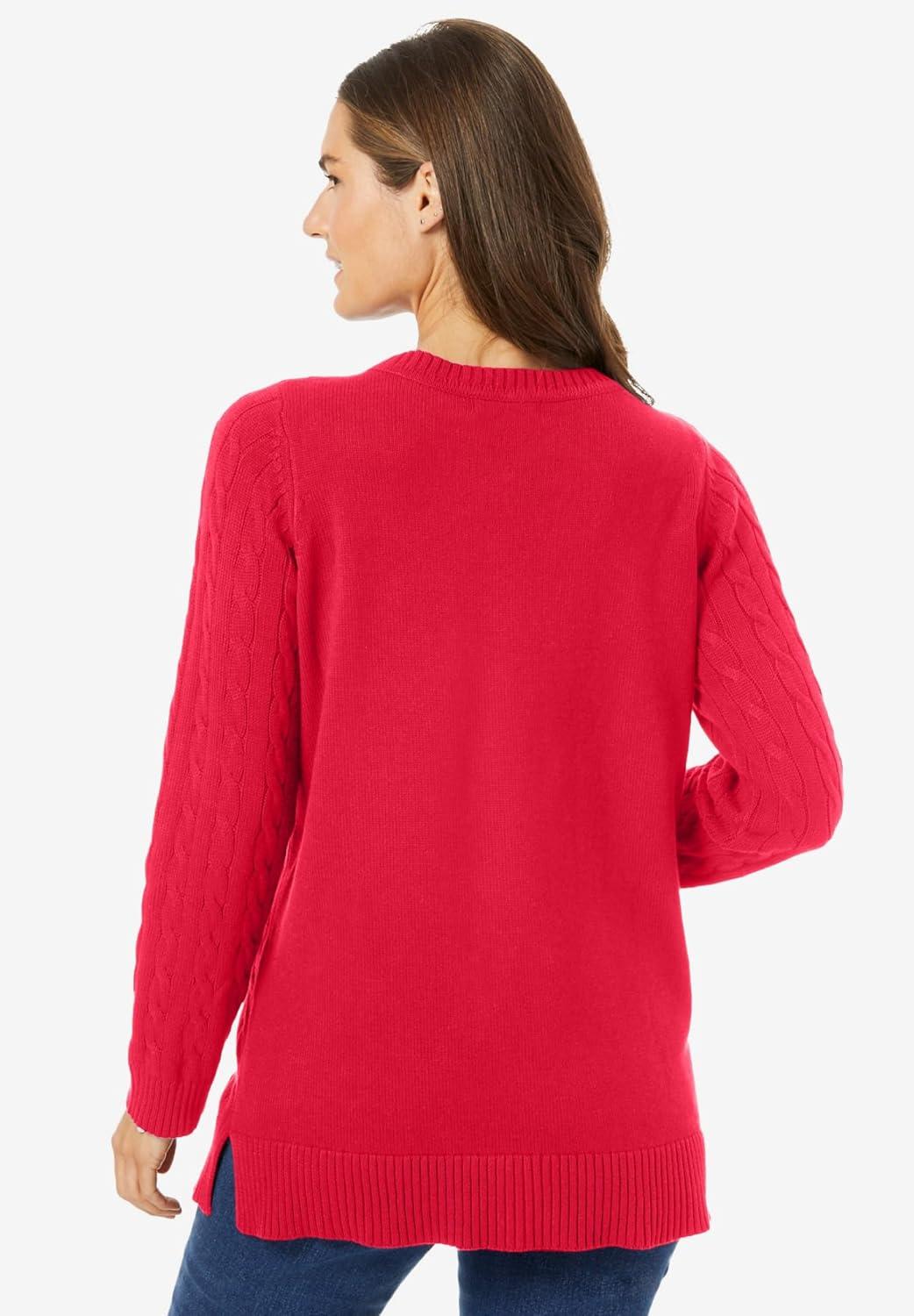 Woman Within Plus Size Cable Knit Pullover Crewneck Sweater(Vivid Red)