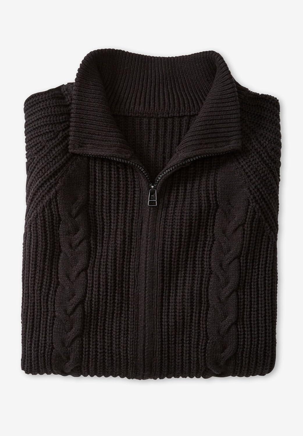 Woman Within Plus Size Cabled Zip-Front Cardigan(Black)