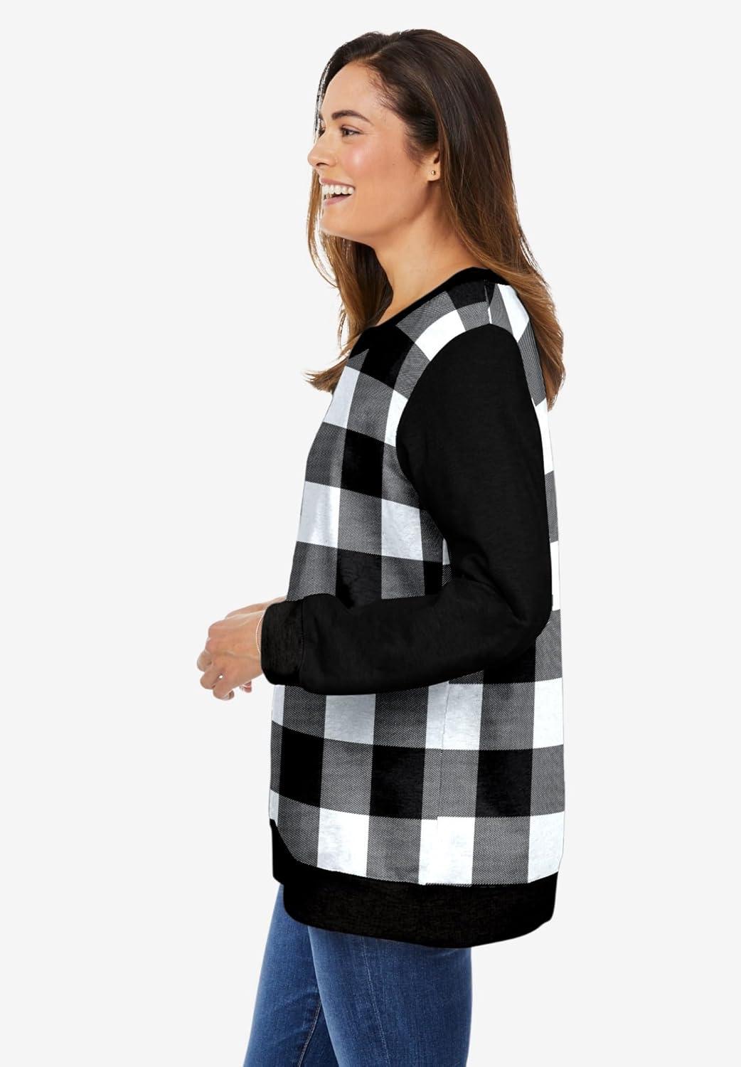 • Woman Within Plus Size Printed Sweatshirt(Black Buffalo Plaid)