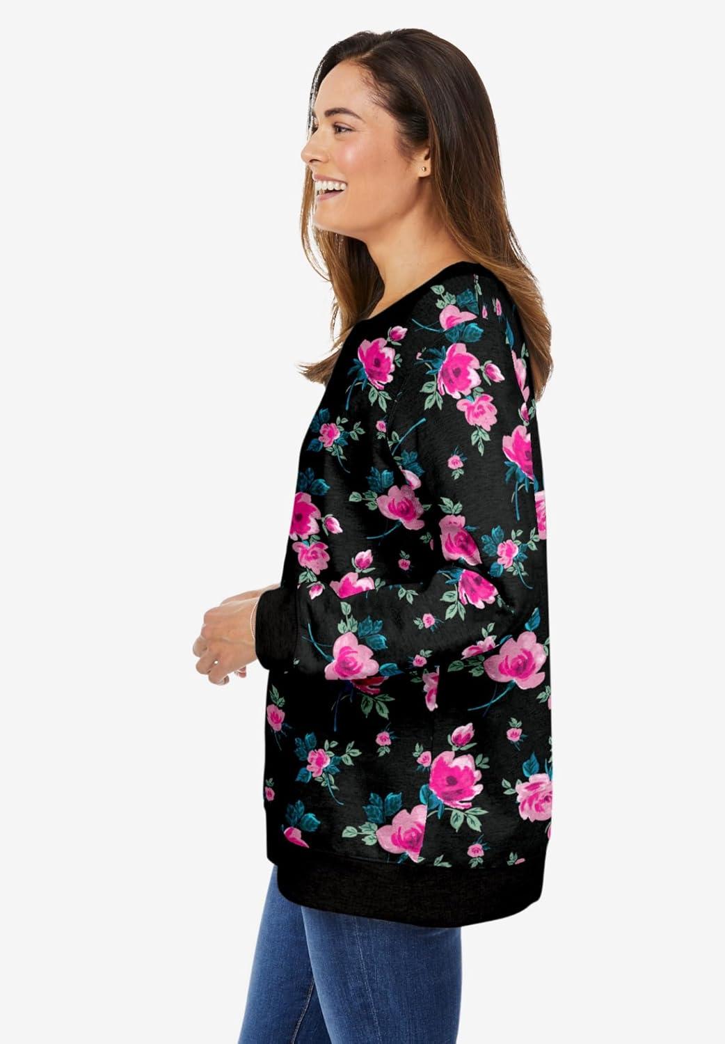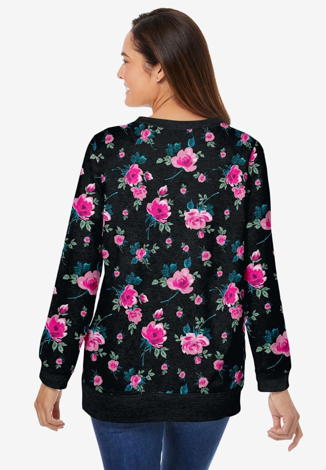 Woman Within Plus Size Printed Sweatshirt(Black Rose)