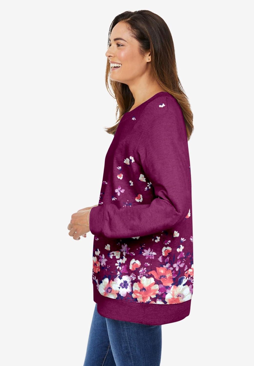 • Woman Within Plus Size Printed Sweatshirt(Deep Claret Growing Garden)