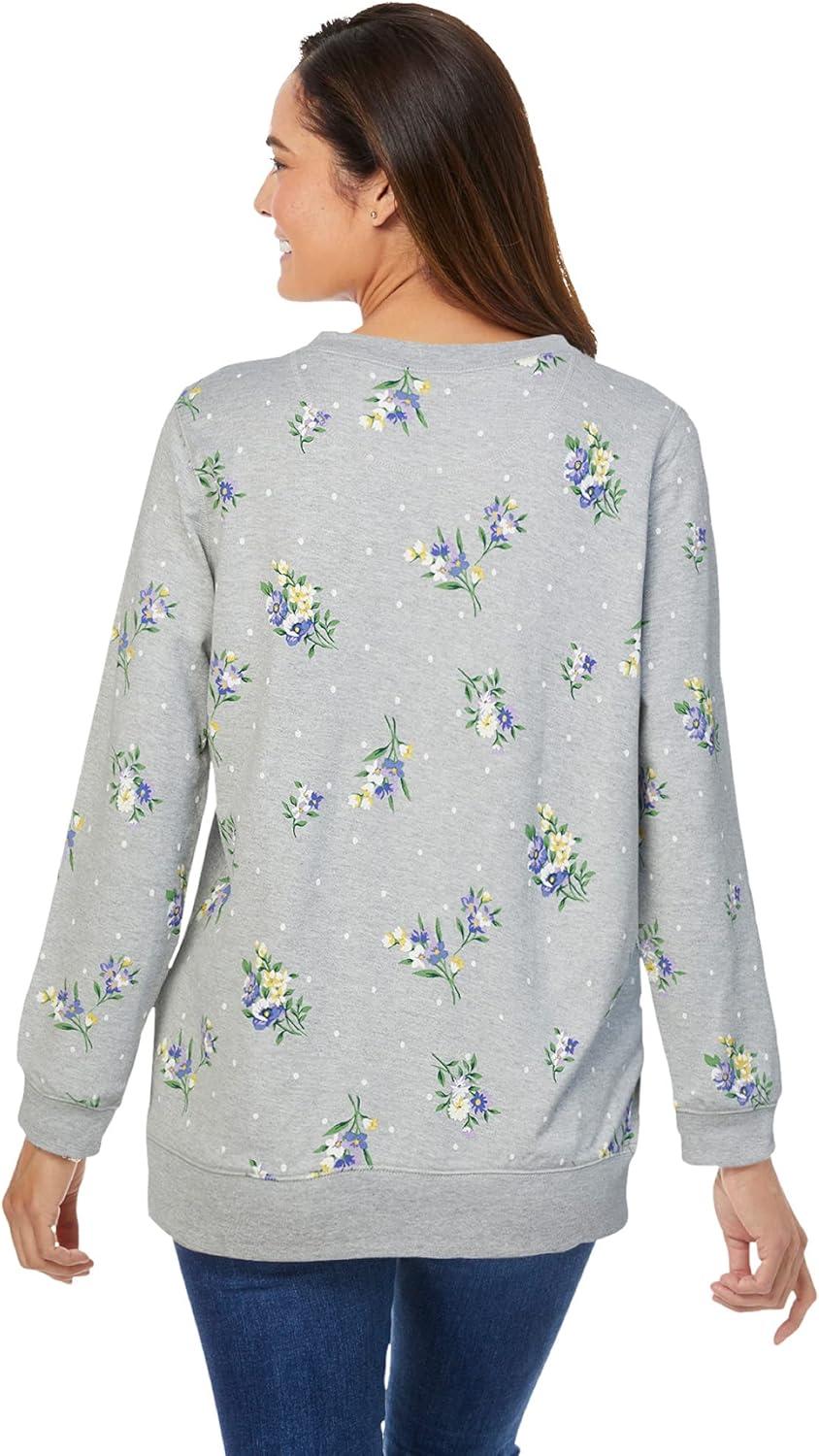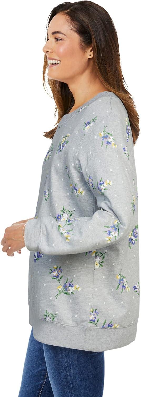 Woman Within Plus Size Printed Sweatshirt(Heather Grey Multi Rose Vine)