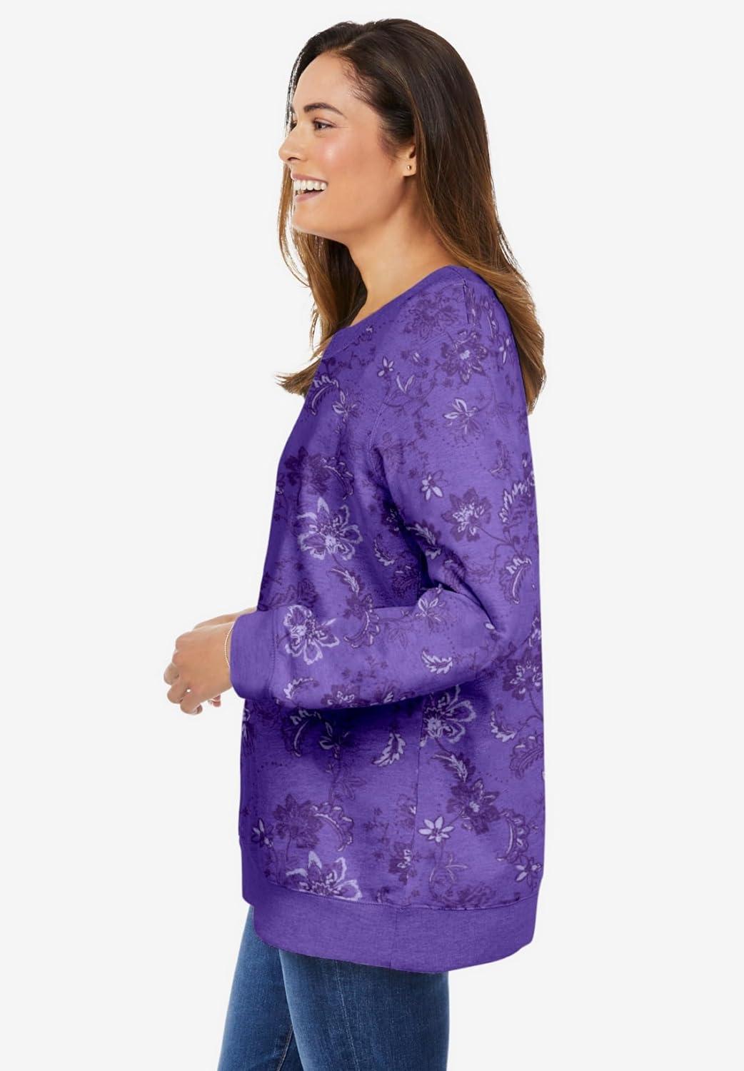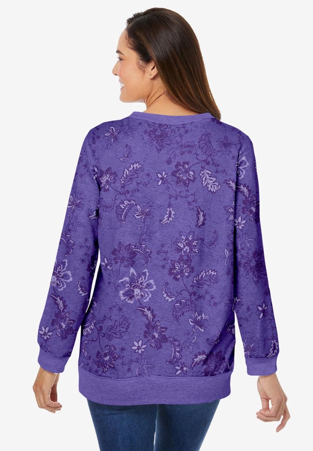 • Woman Within Plus Size Printed Sweatshirt(Radiant Purple Multi Floral Embroidery)