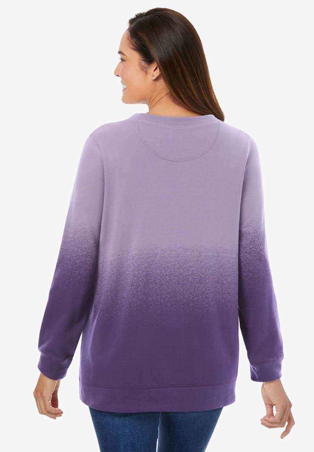 Woman Within Plus Size Printed Sweatshirt(Radiant Purple Ombre)