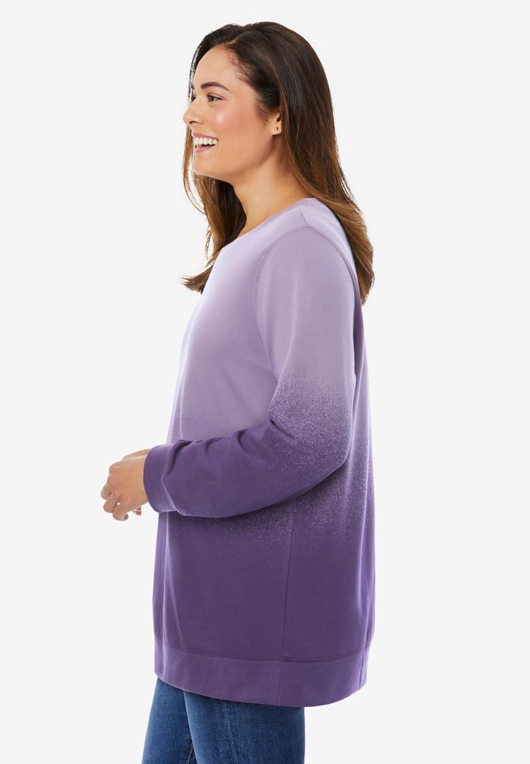 • Woman Within Plus Size Printed Sweatshirt(Radiant Purple Ombre)