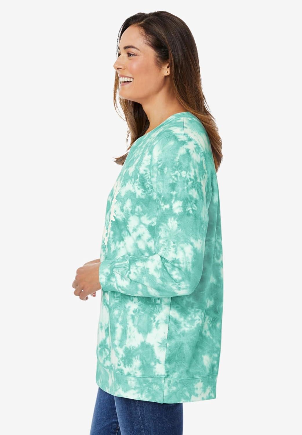 Woman Within Plus Size Printed Sweatshirt(Island Aqua Heart Tie Dye)
