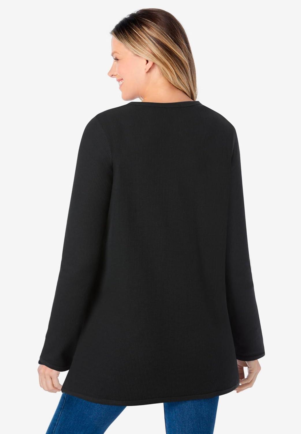 • Woman Within Plus Size Ultra Soft Waffle Thermal Sweatshirt(Black)