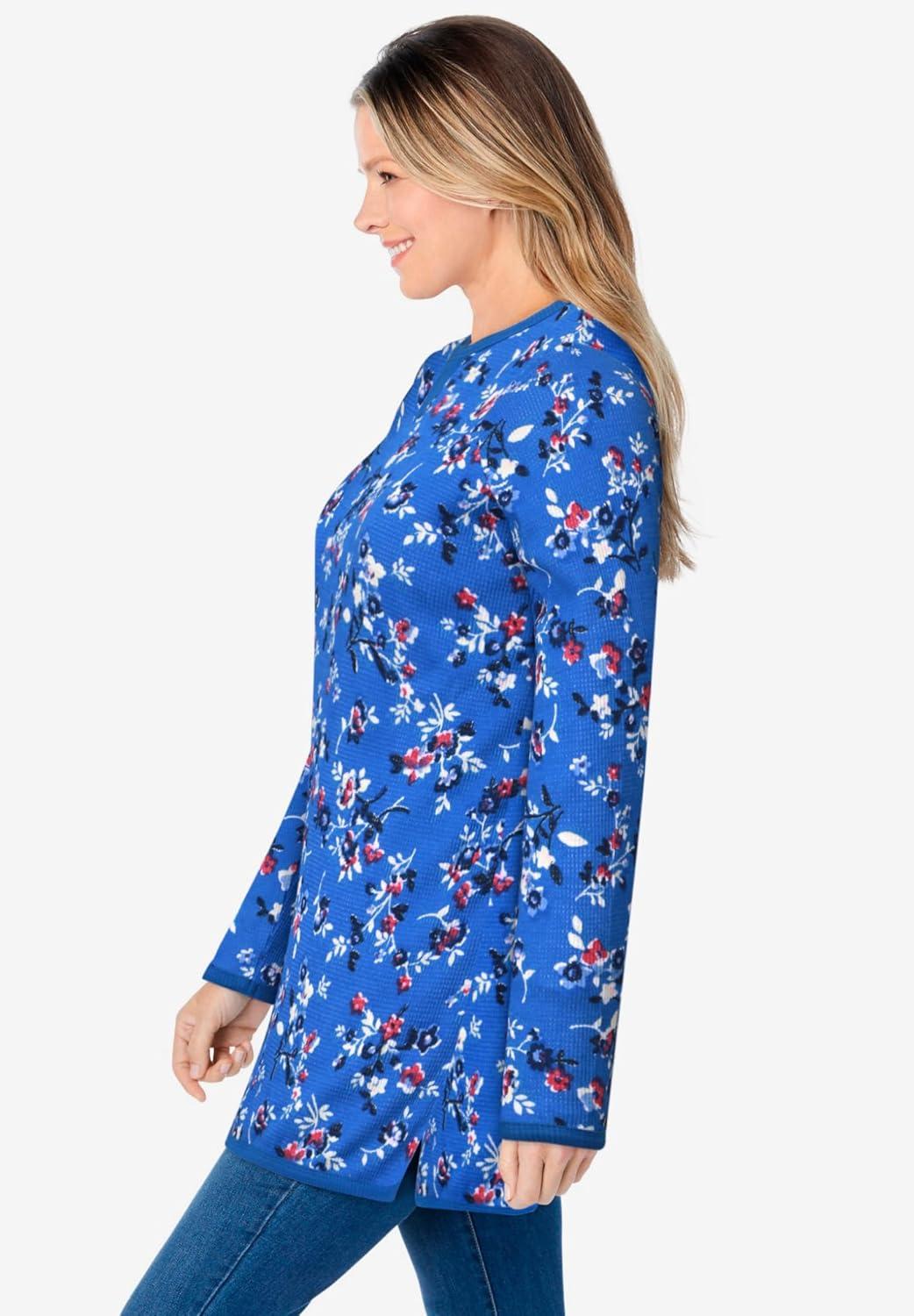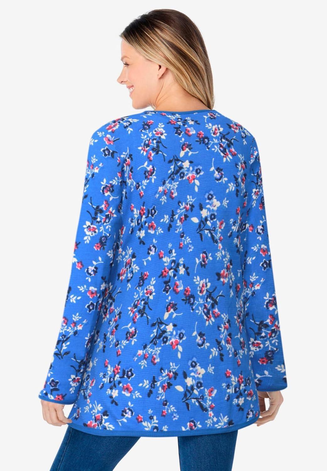 • Woman Within Plus Size Ultra Soft Waffle Thermal Sweatshirt(Bright Cobalt Multi Delicate Floral)