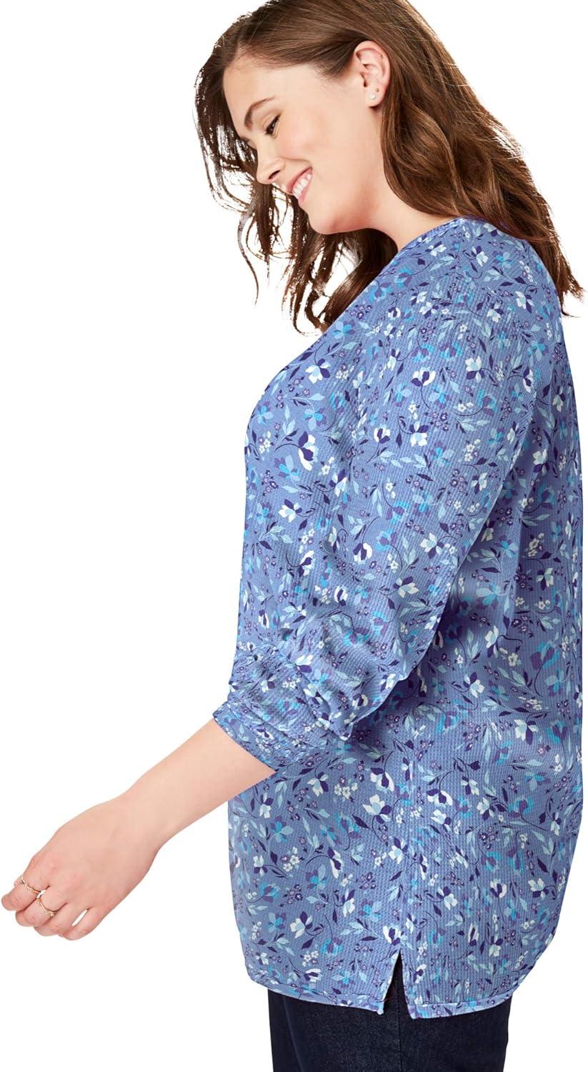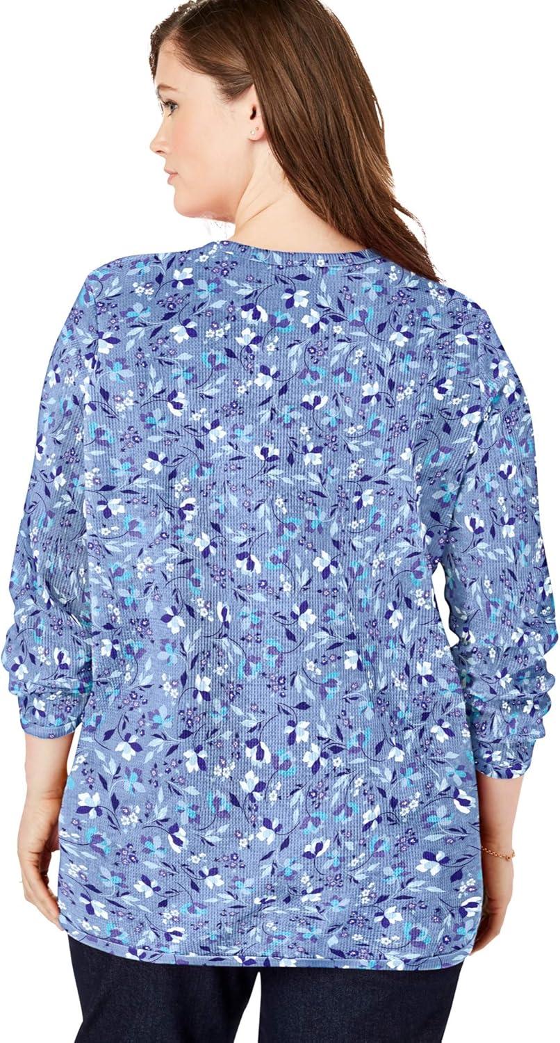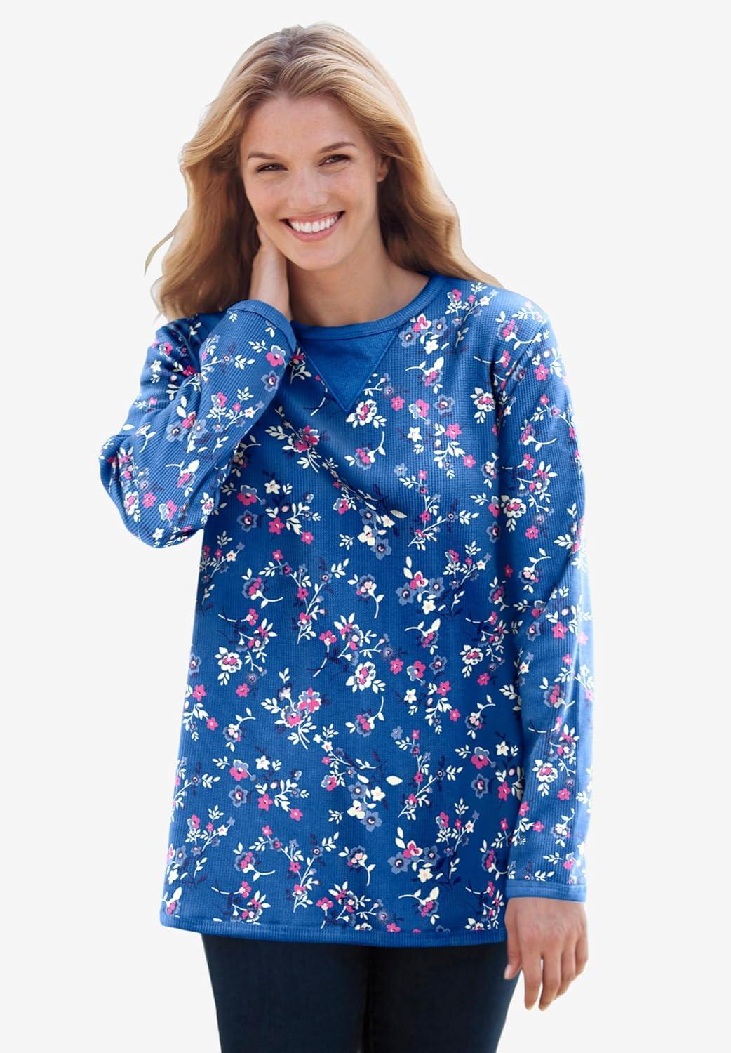 • Woman Within Plus Size Ultra Soft Waffle Thermal Sweatshirt(French Blue Dancing Floral)
