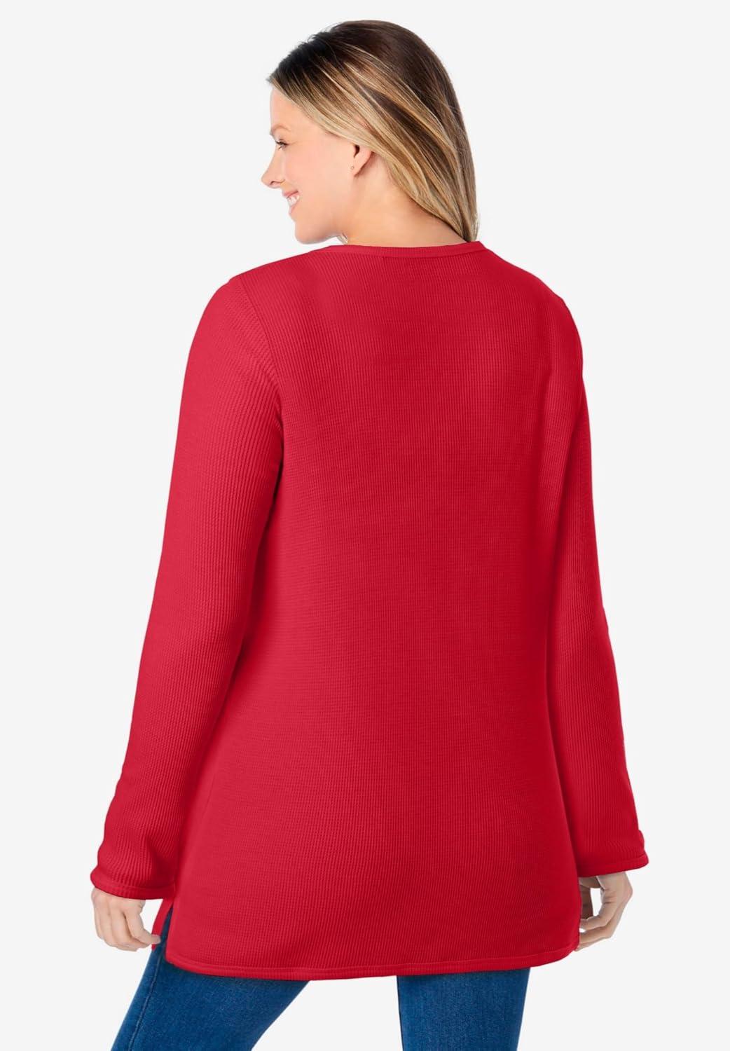 • Woman Within Plus Size Ultra Soft Waffle Thermal Sweatshirt(Classic Red)