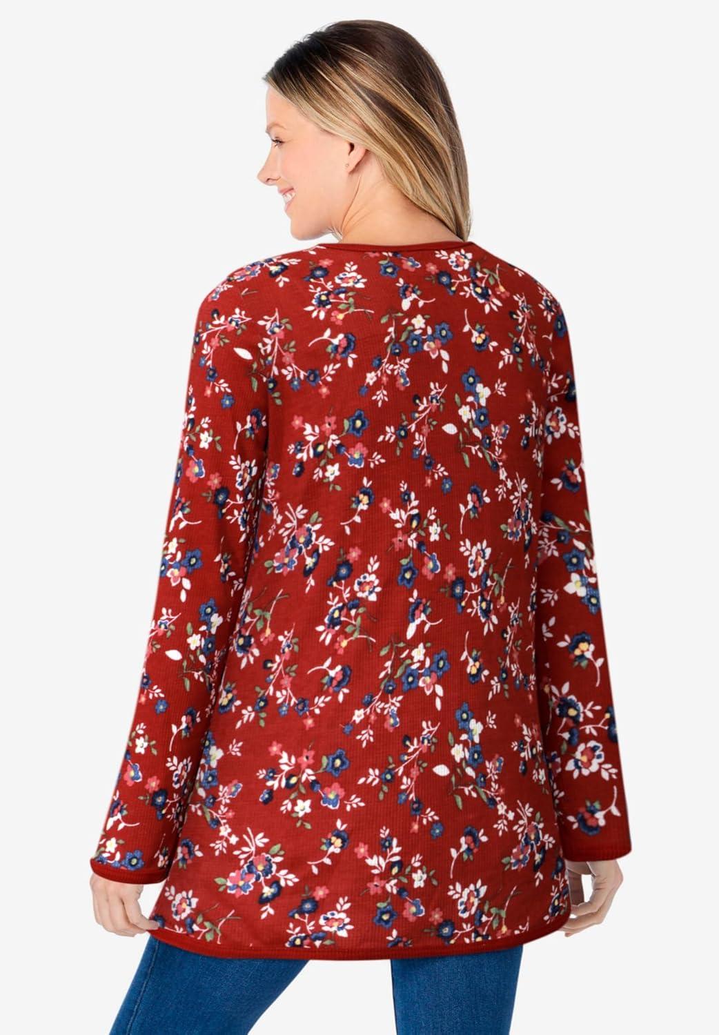 • Woman Within Plus Size Ultra Soft Waffle Thermal Sweatshirt(Classic Red Multi Delicate Floral)