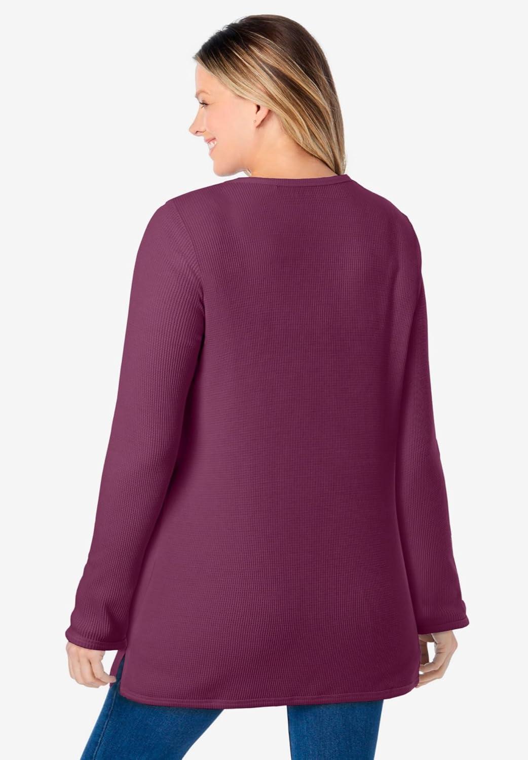 • Woman Within Plus Size Ultra Soft Waffle Thermal Sweatshirt(Deep Claret)
