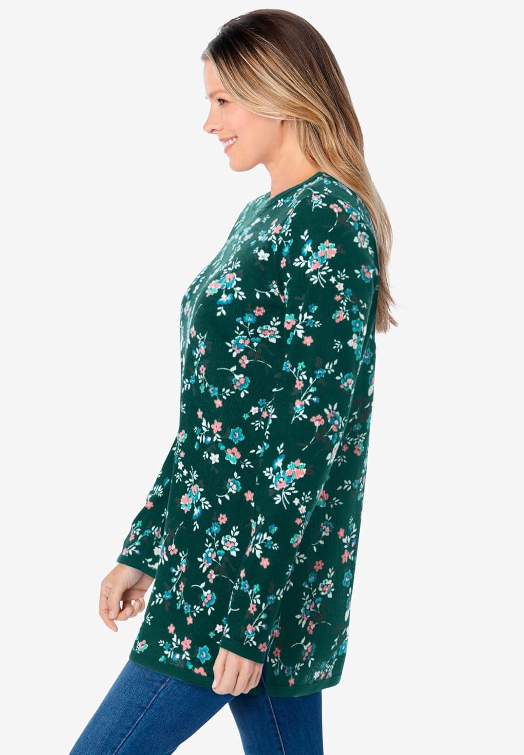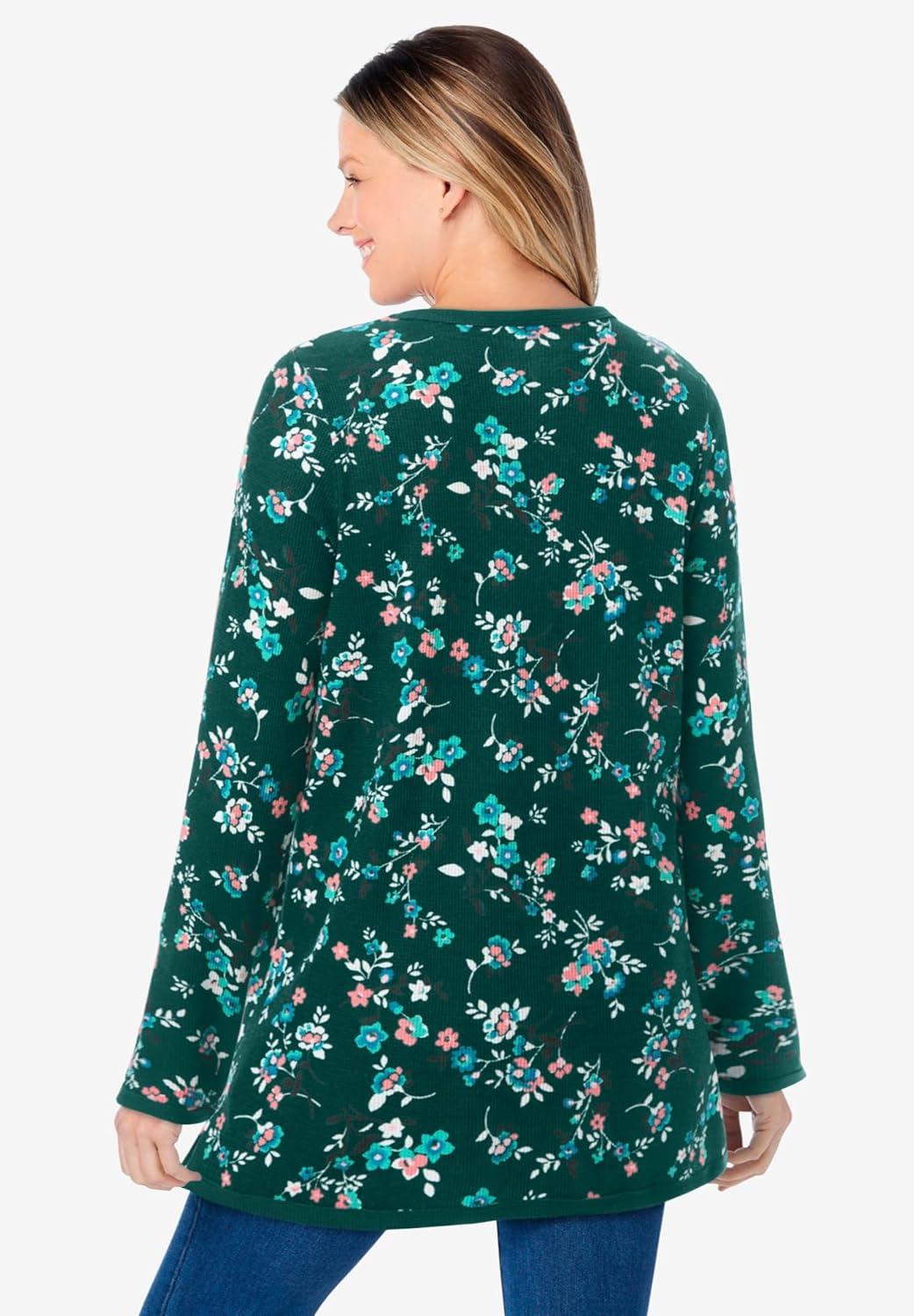 • Woman Within Plus Size Ultra Soft Waffle Thermal Sweatshirt(Emerald Green Multi Delicate Floral)