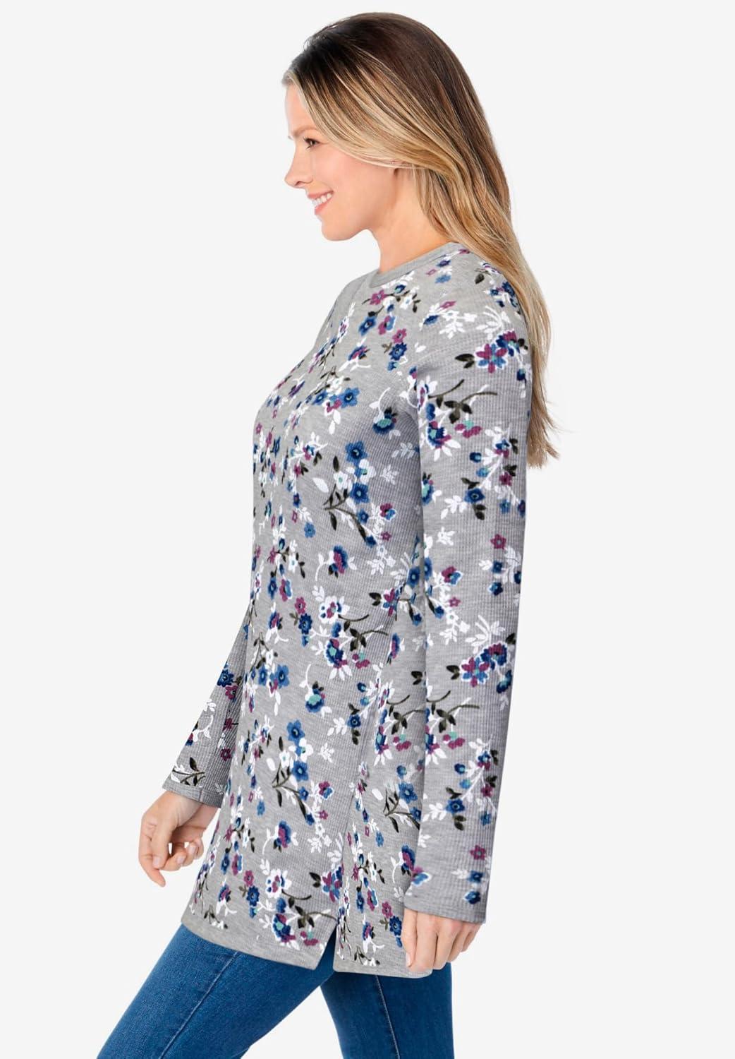 • Woman Within Plus Size Ultra Soft Waffle Thermal Sweatshirt(Heather Grey Multi Delicate Floral)