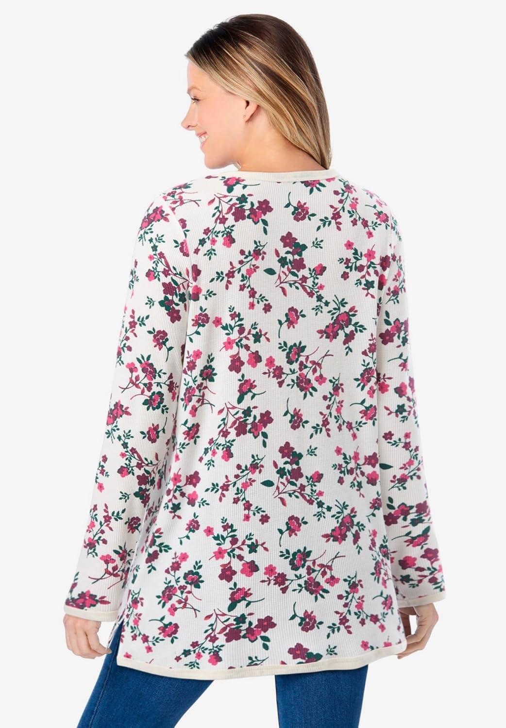 • Woman Within Plus Size Ultra Soft Waffle Thermal Sweatshirt(Ivory Multi Delicate Floral)