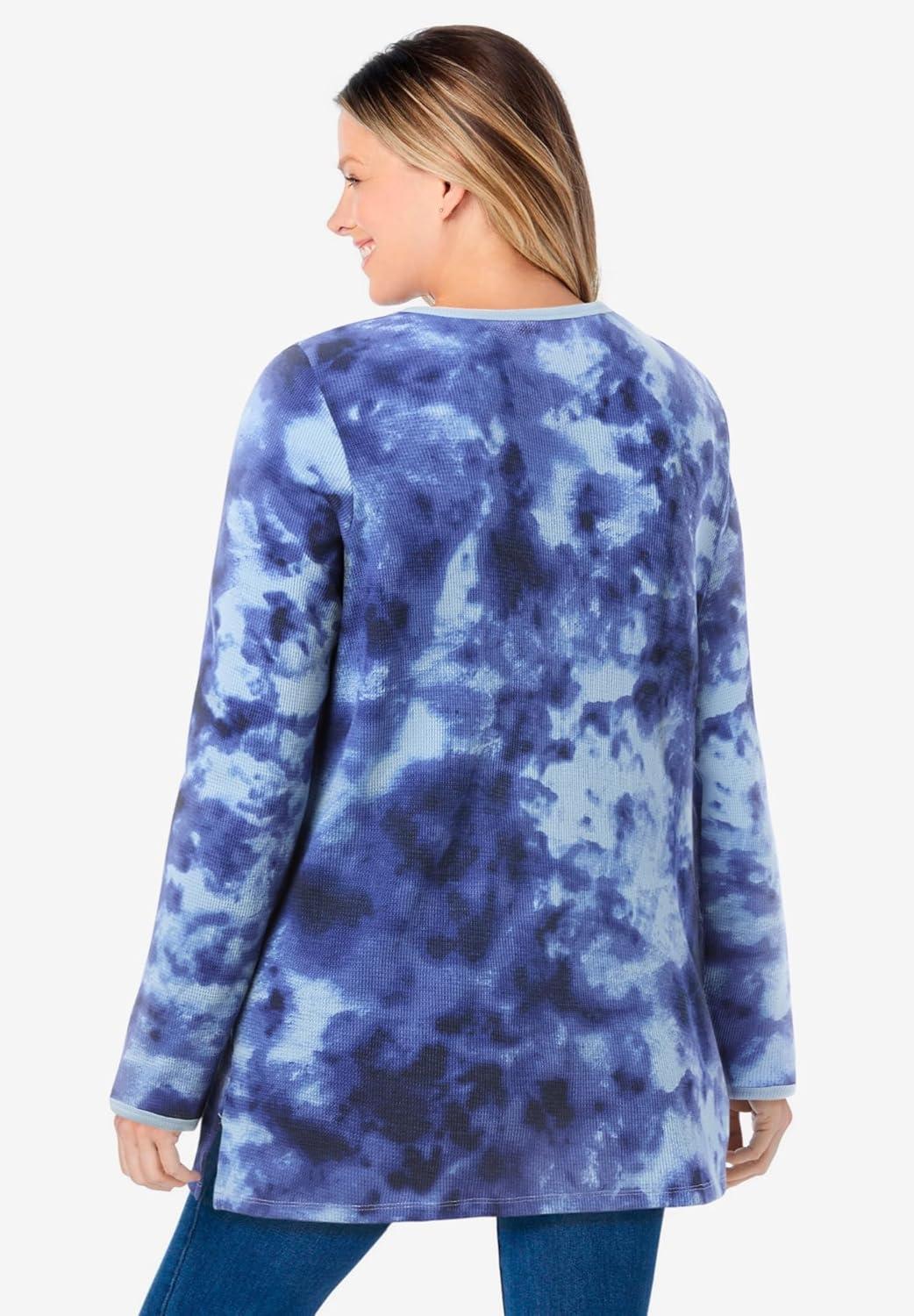• Woman Within Plus Size Ultra Soft Waffle Thermal Sweatshirt(Navy Tie Dye)