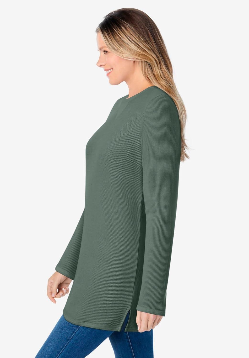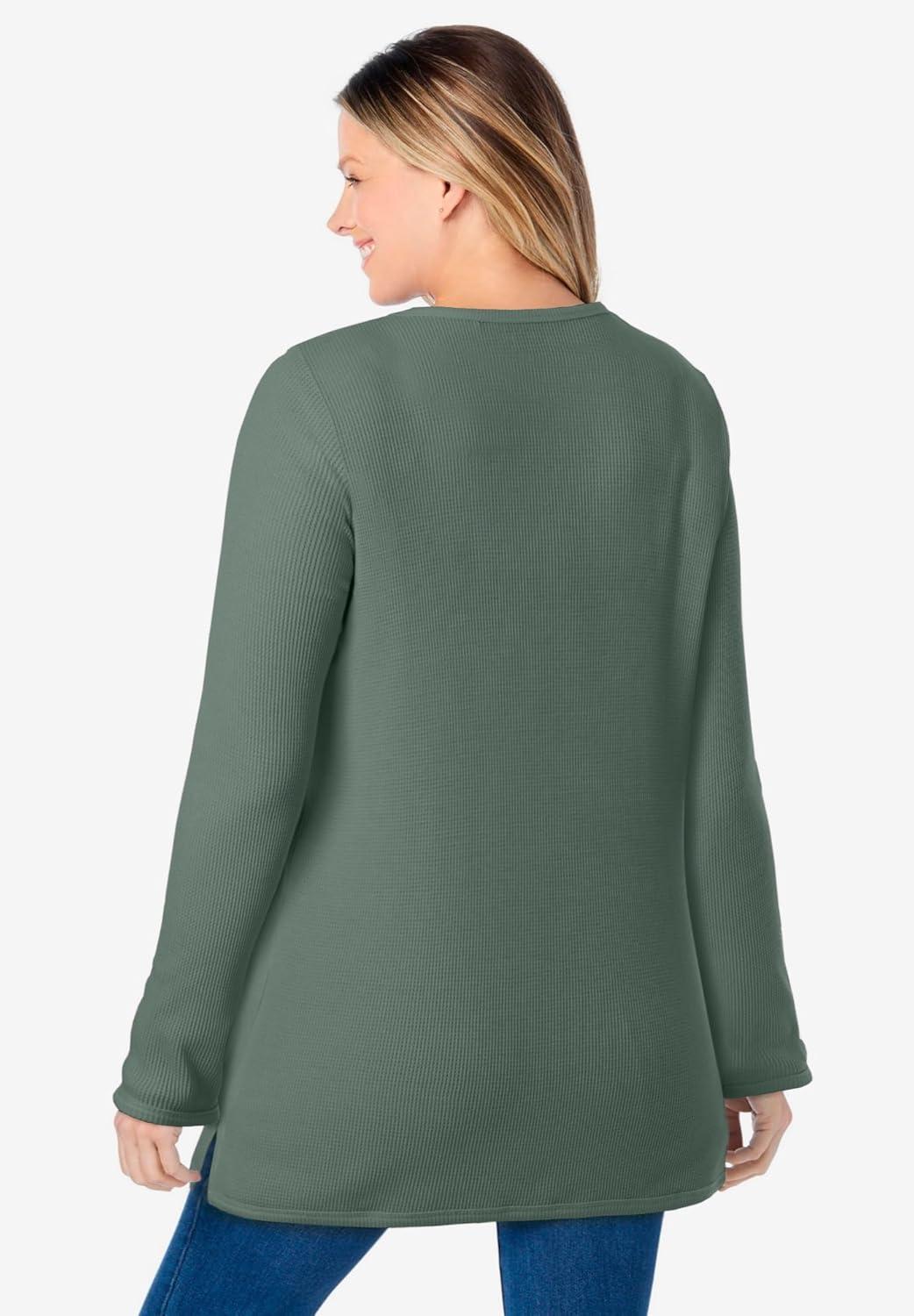 • Woman Within Plus Size Ultra Soft Waffle Thermal Sweatshirt(Pine)