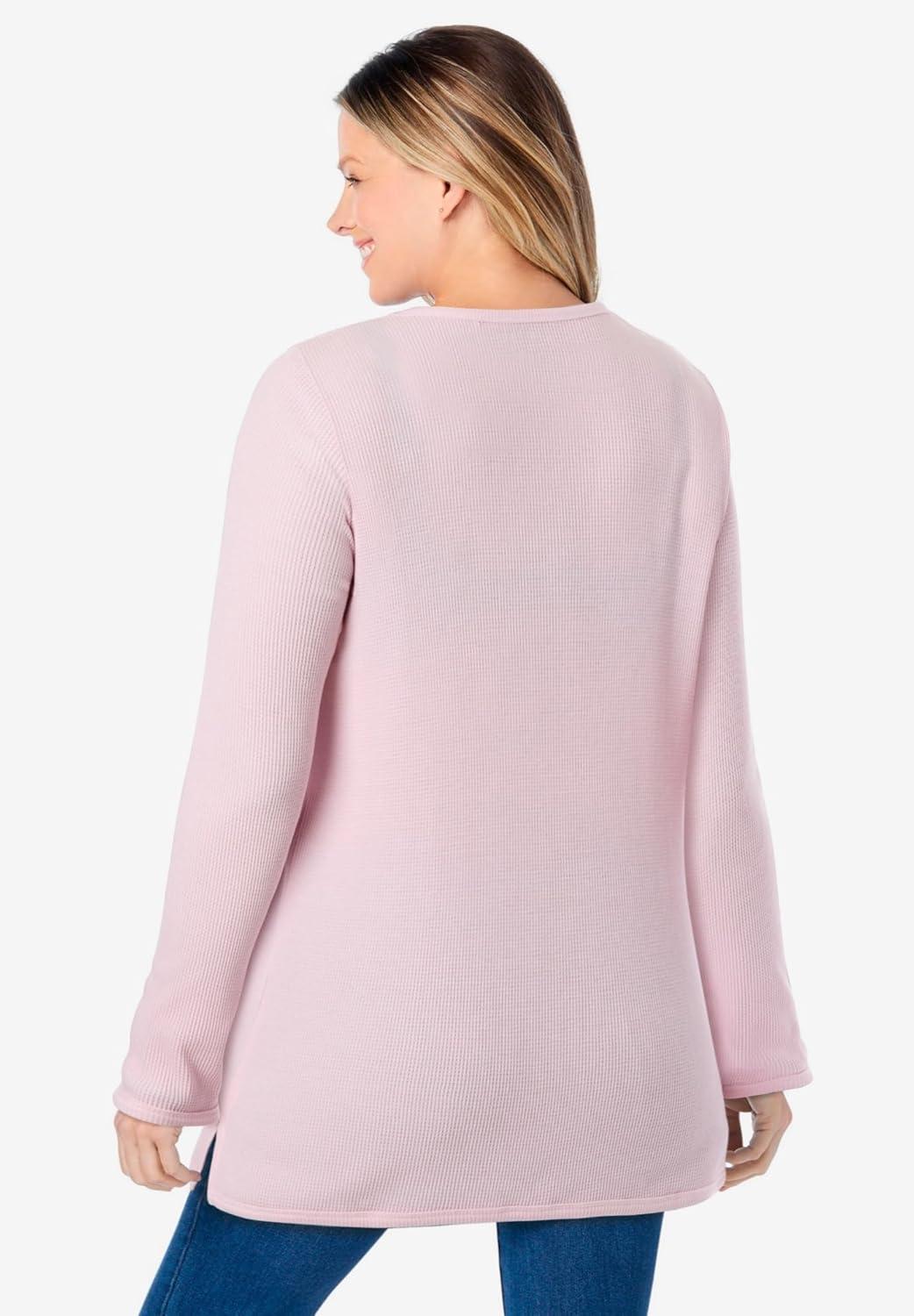• Woman Within Plus Size Ultra Soft Waffle Thermal Sweatshirt(Pink)