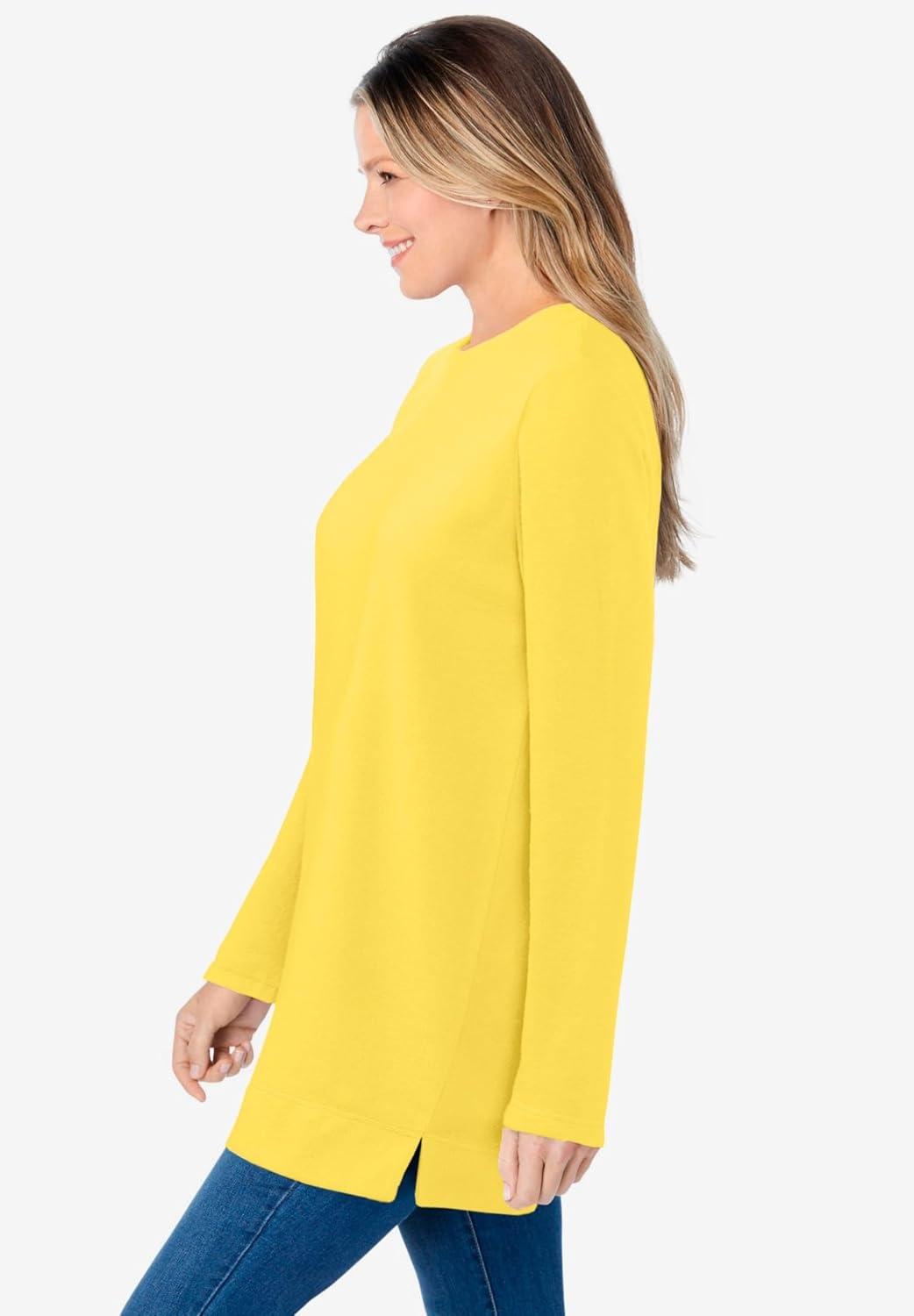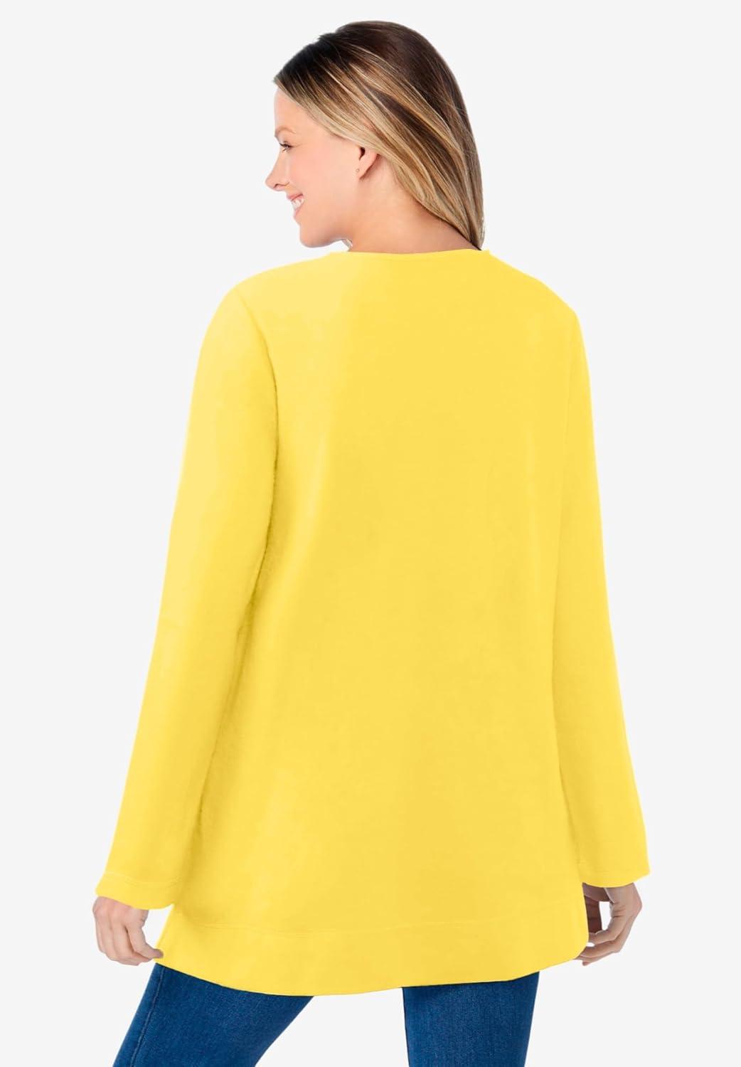 Woman Within Plus Size Ultra Soft Waffle Thermal Sweatshirt(Primrose Yellow)
