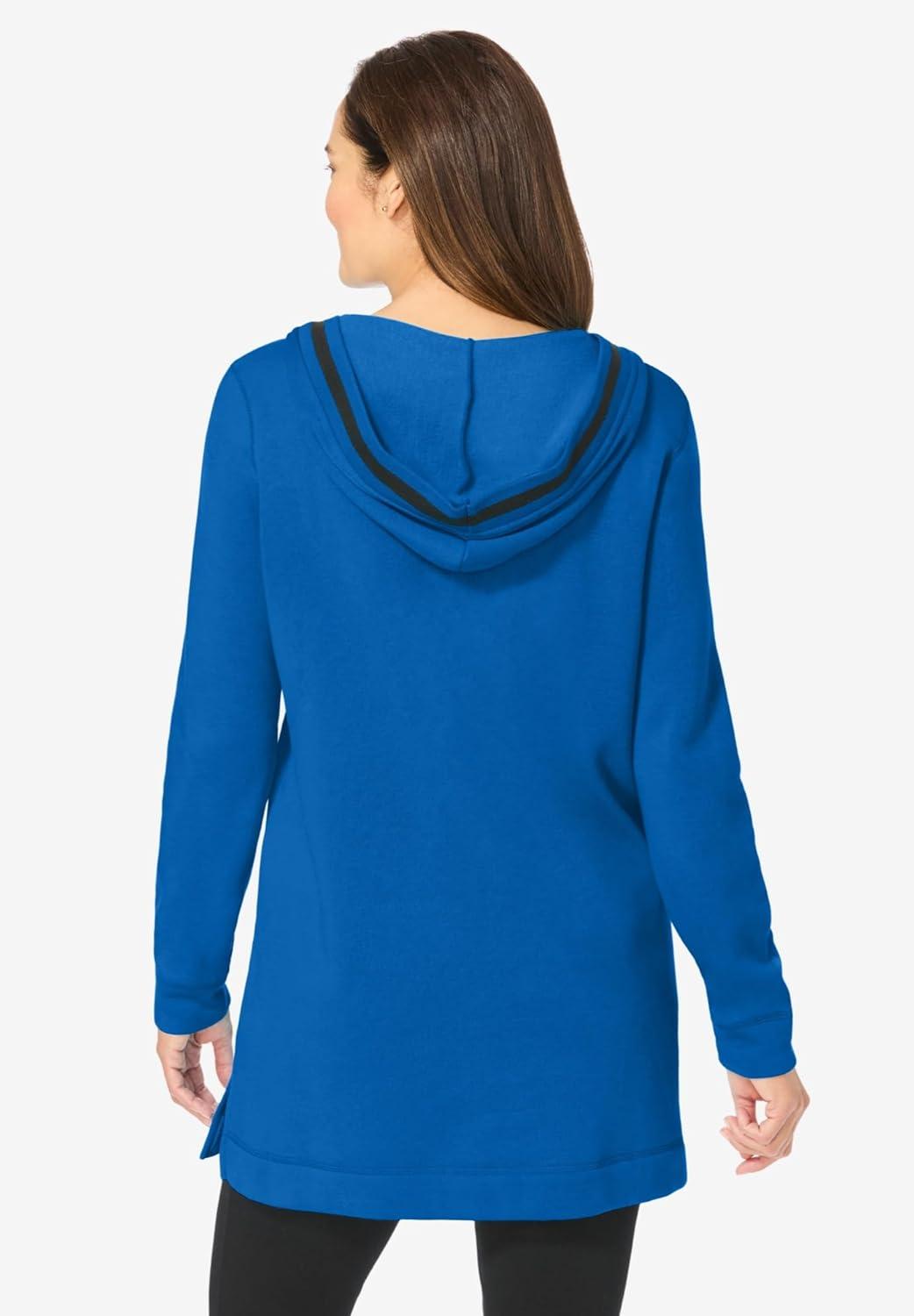 Woman Within Plus Size V-Neck Hoodie Sweatshirt(Bright Cobalt)