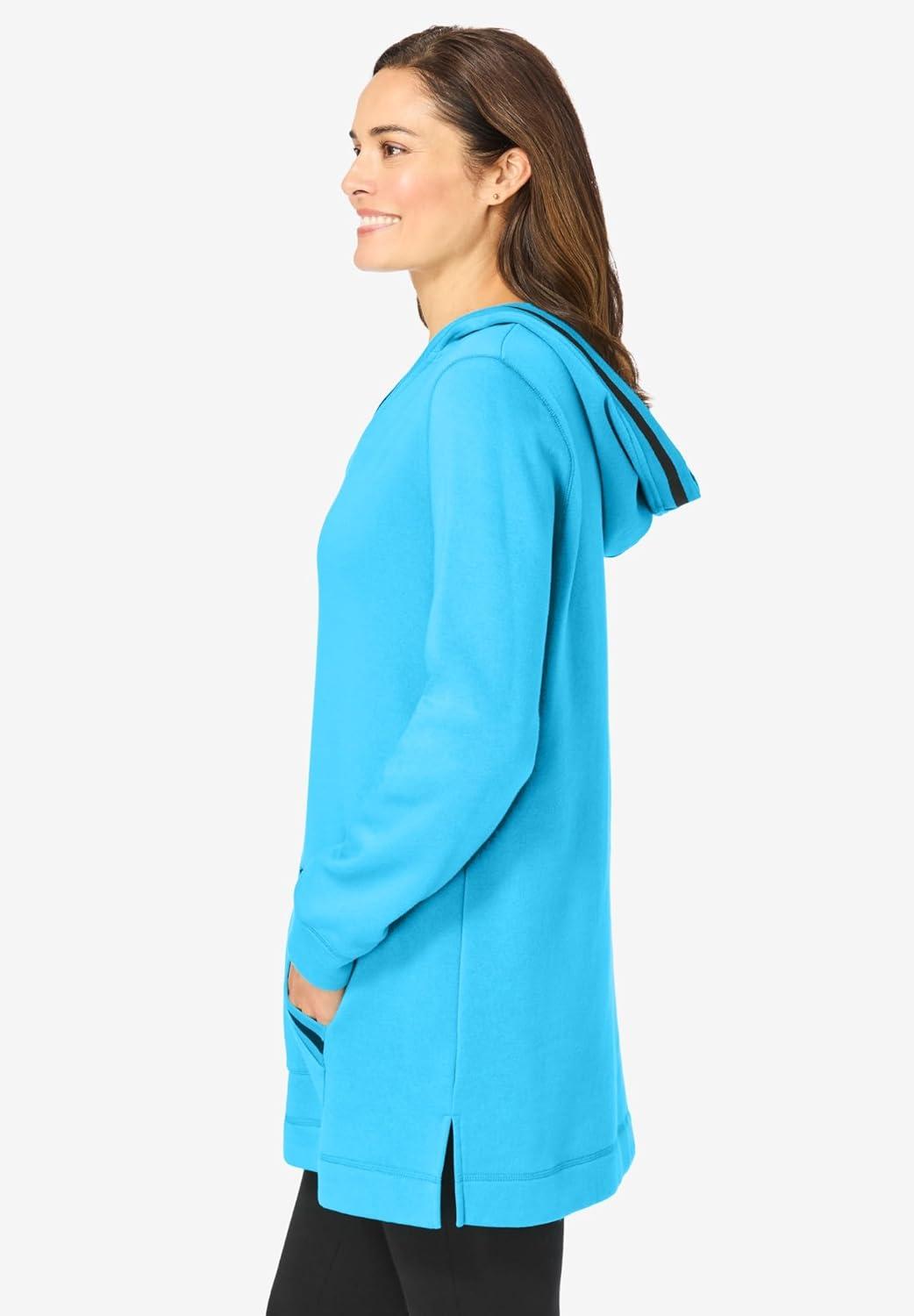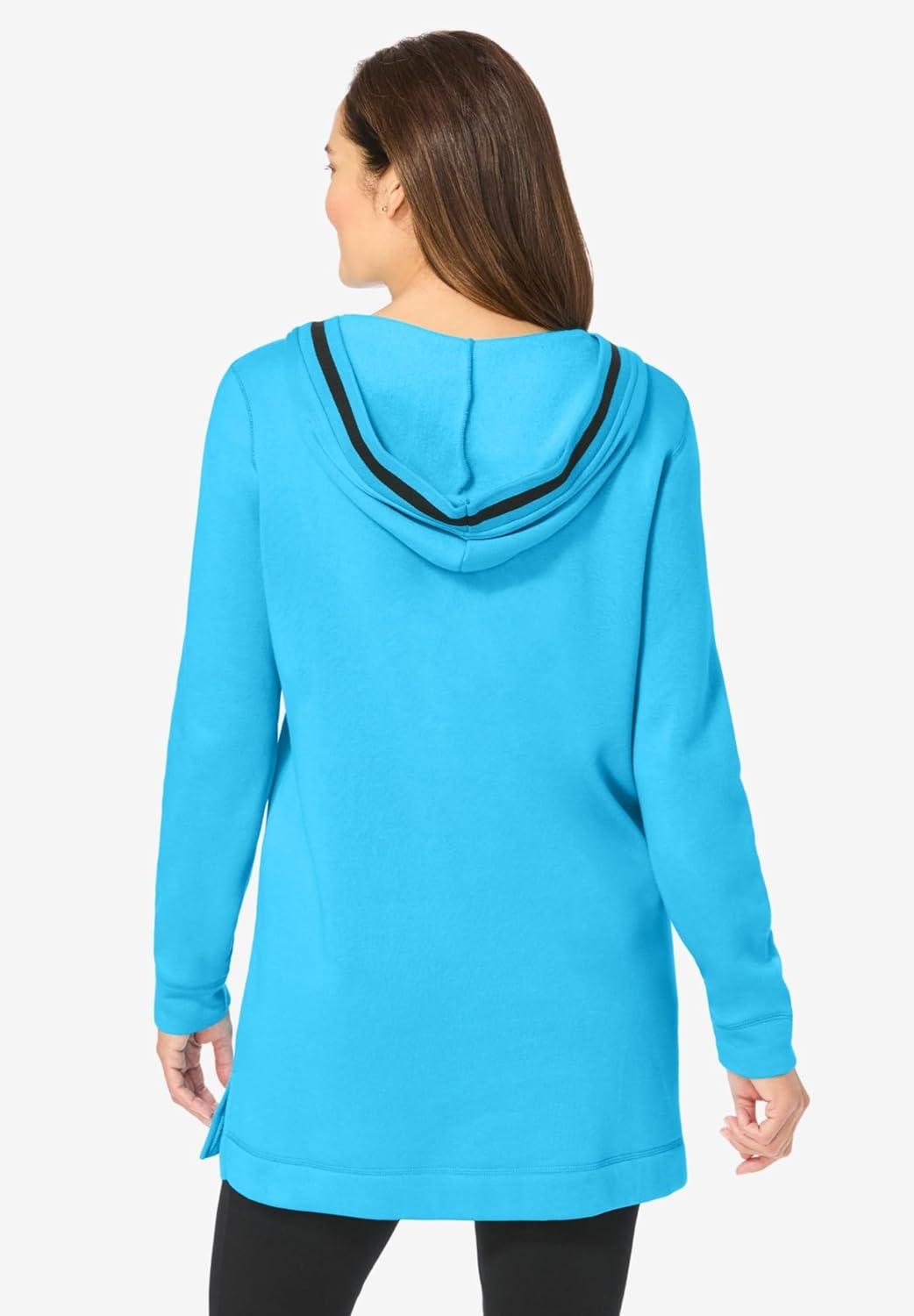 Woman Within Plus Size V-Neck Hoodie Sweatshirt(Paradise Blue)