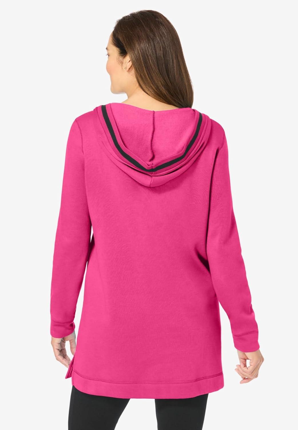 Woman Within Plus Size V-Neck Hoodie Sweatshirt(Raspberry Sorbet)