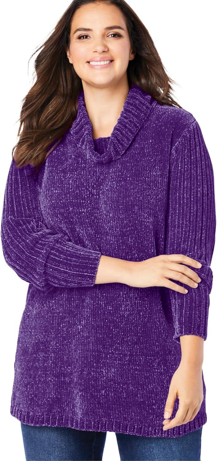 Woman Within Plus Size Chenille Cowlneck(Radiant Purple)
