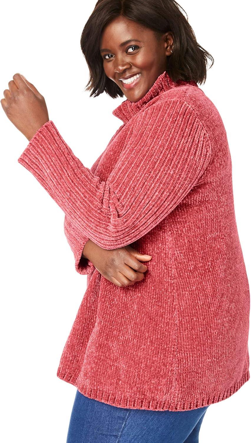 Woman Within Plus Size Chenille Cowlneck(Peony Petal)