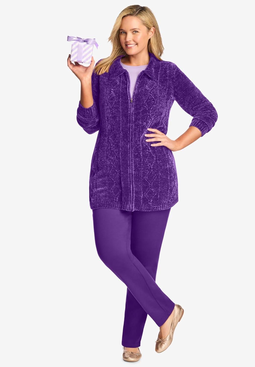 Woman Within Plus Size Chenille Zip Cable Cardigan(Radiant Purple)