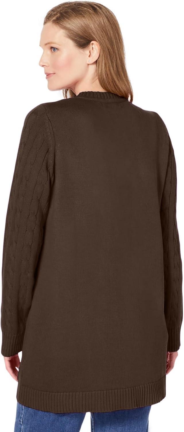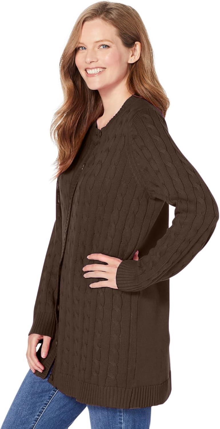 Woman Within Plus Size Cotton Cable Knit Cardigan Sweater(Chocolate)