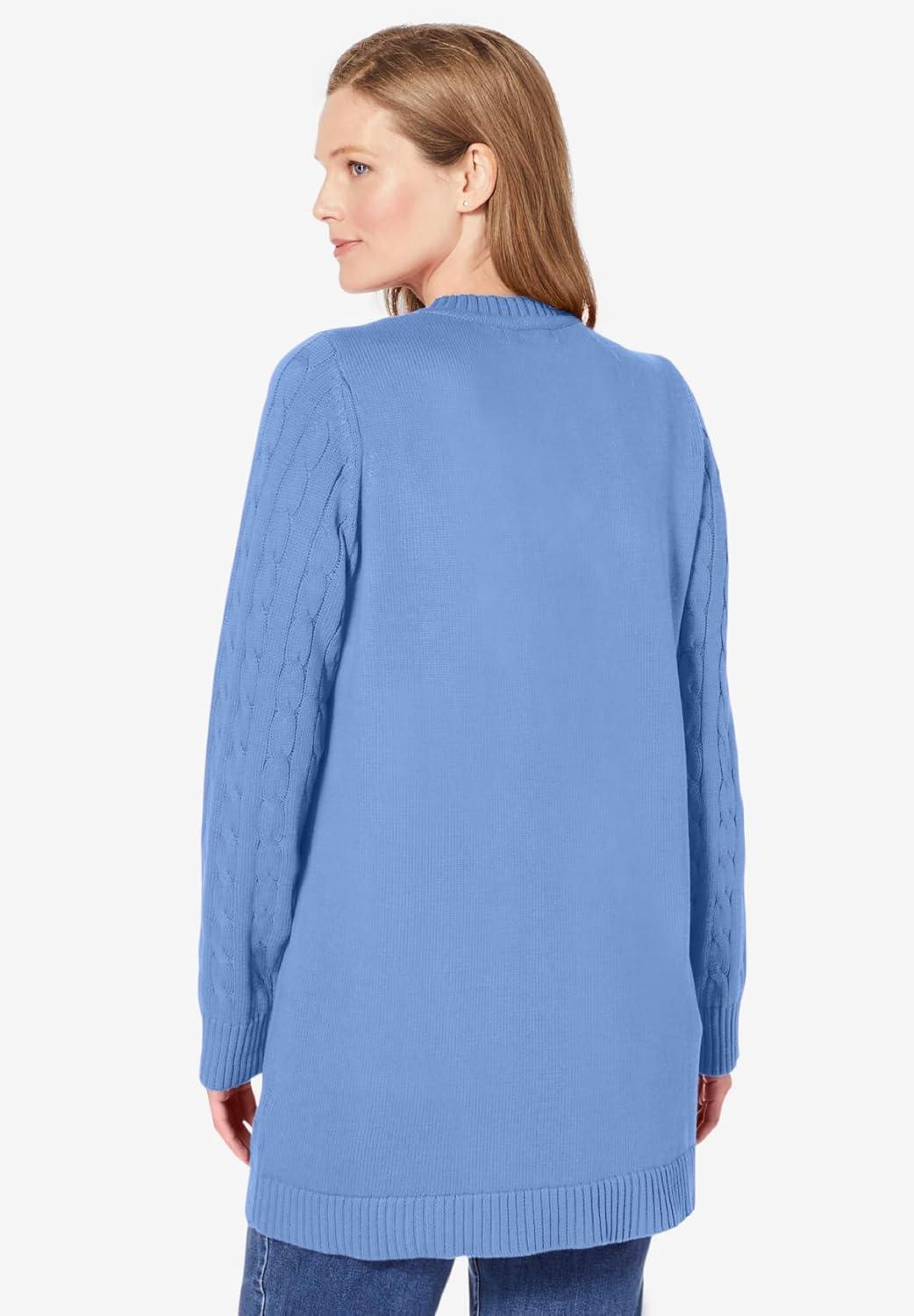 Woman Within Plus Size Cotton Cable Knit Cardigan Sweater(French Blue)