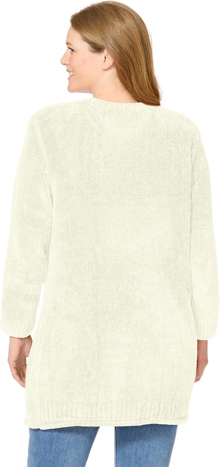 Woman Within Plus Size Cotton Cable Knit Cardigan Sweater(Ivory)
