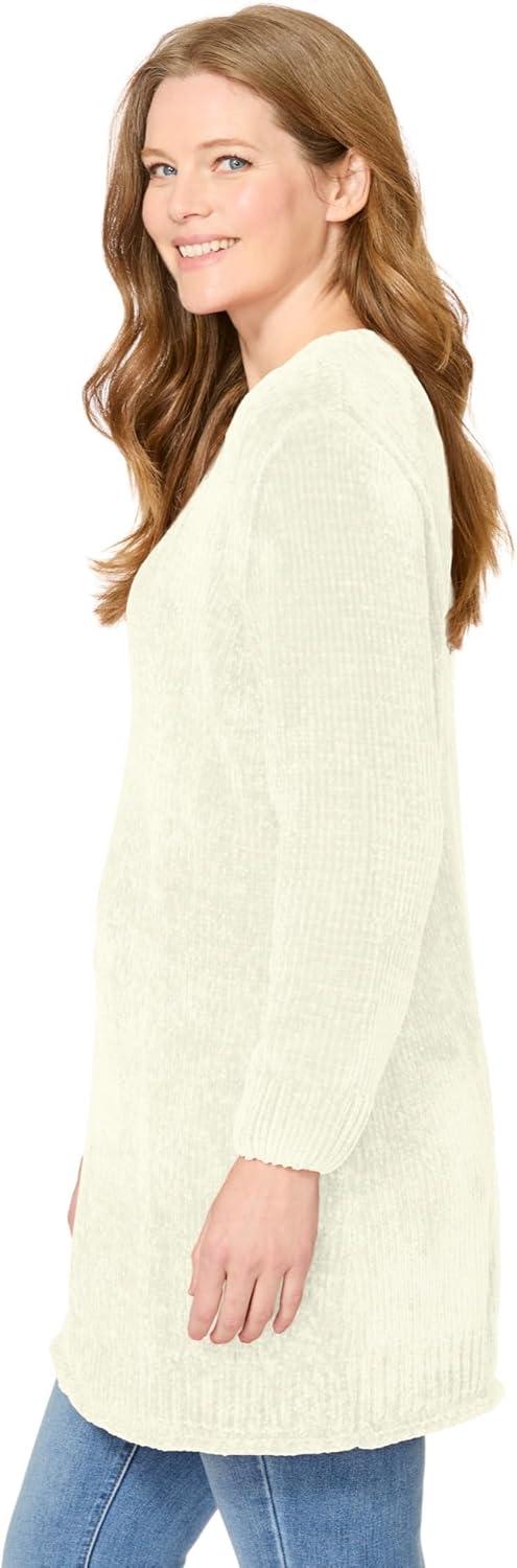 Woman Within Plus Size Crewneck Chenille Sweater(Black Multi Confetti)