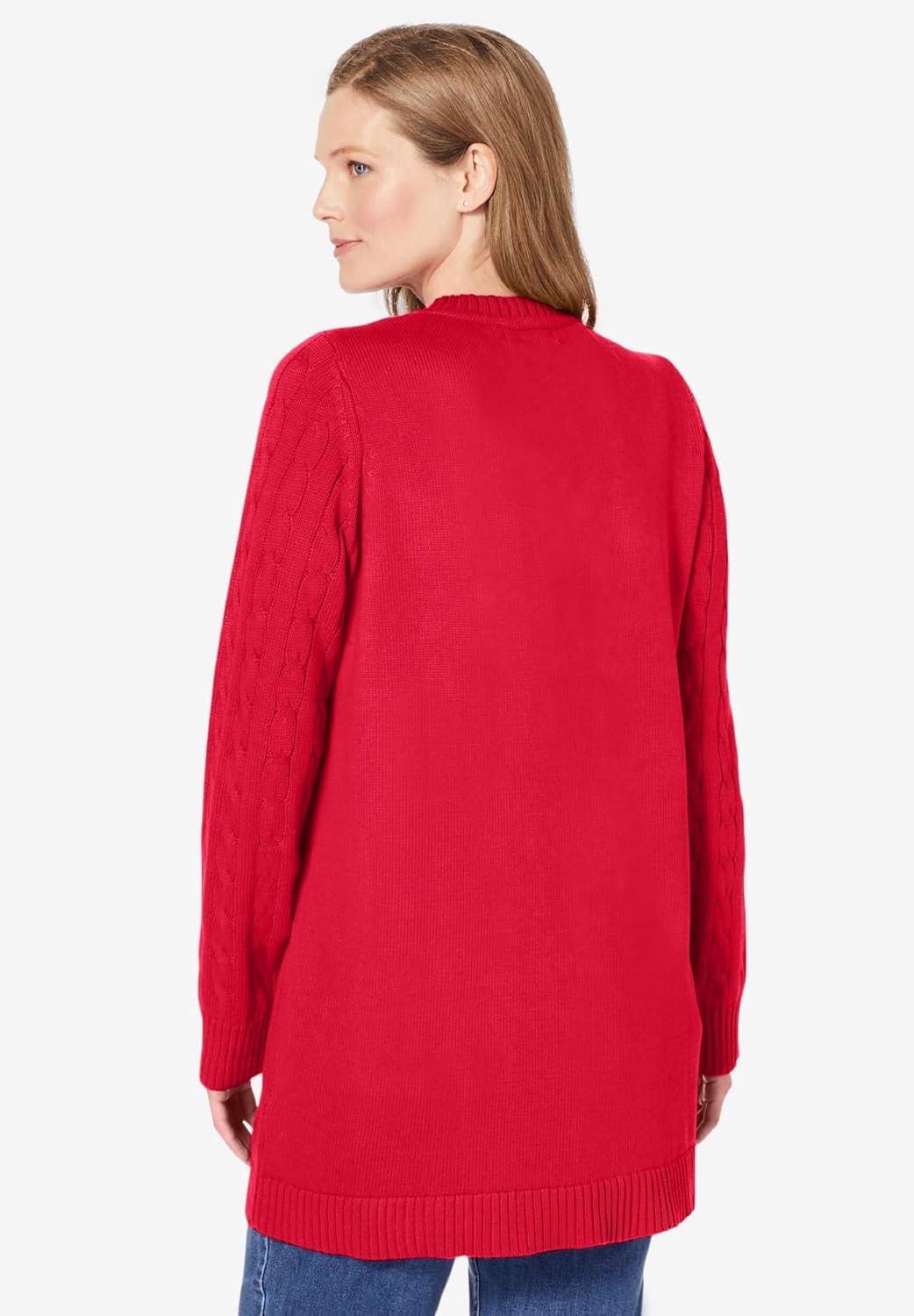 Woman Within Plus Size Cotton Cable Knit Cardigan Sweater(Vivid Red)