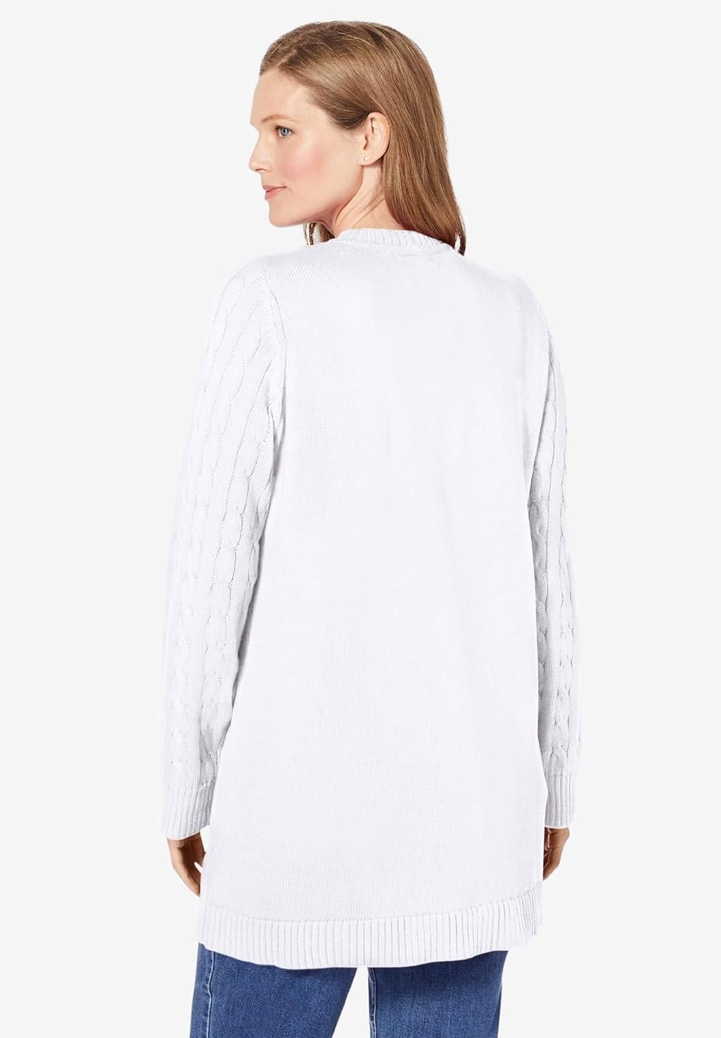 Woman Within Plus Size Cotton Cable Knit Cardigan Sweater(White)