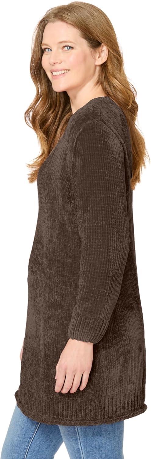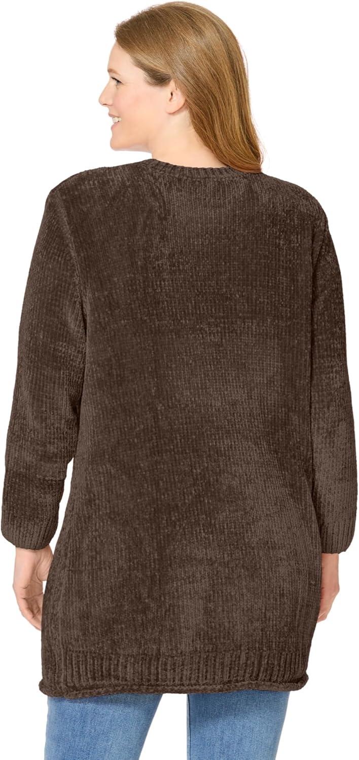 Woman Within Plus Size Crewneck Chenille Sweater(Chocolate)