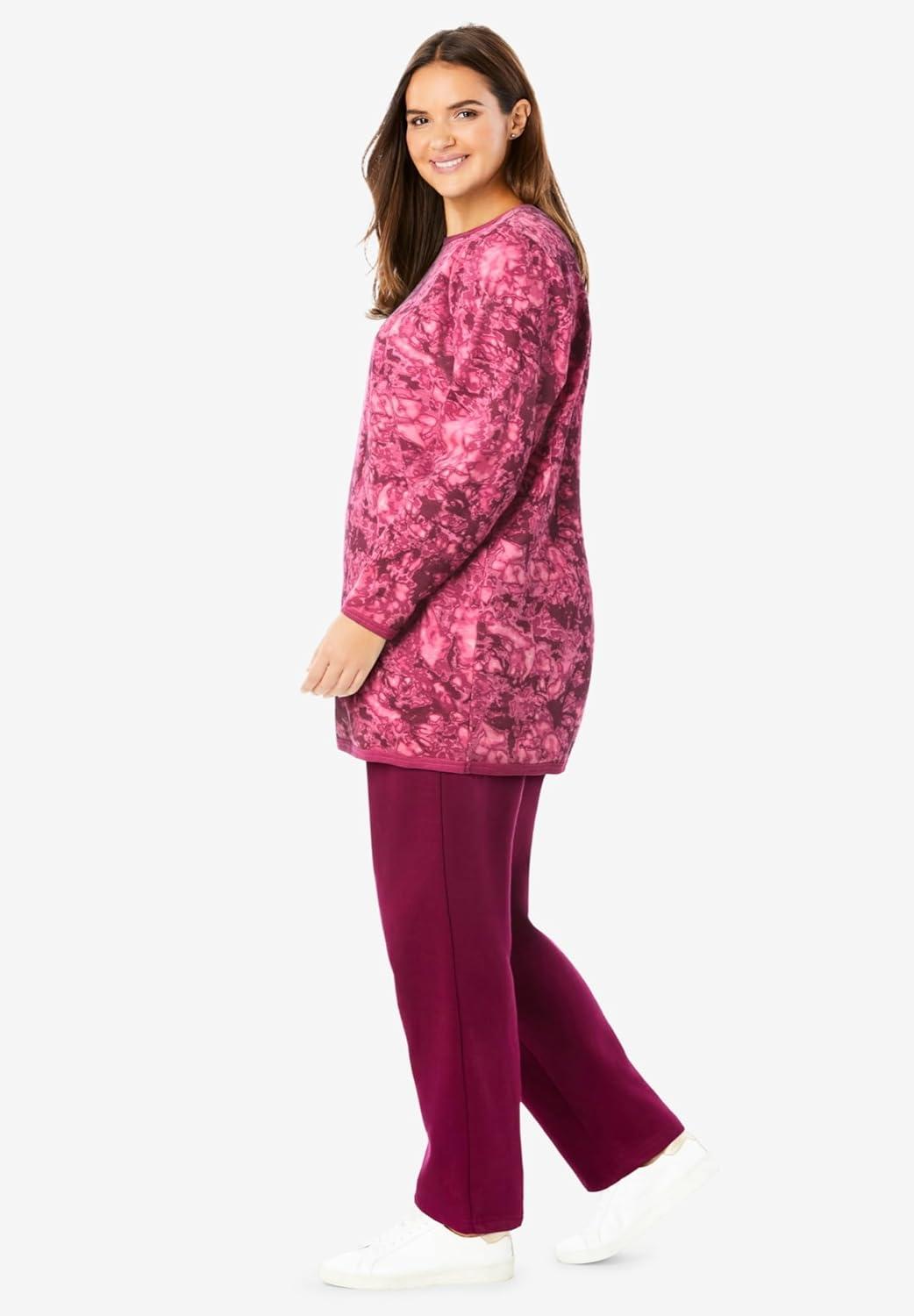 Woman Within Plus Size Fleece Sweatshirt Set(Deep Claret Tie Dye)