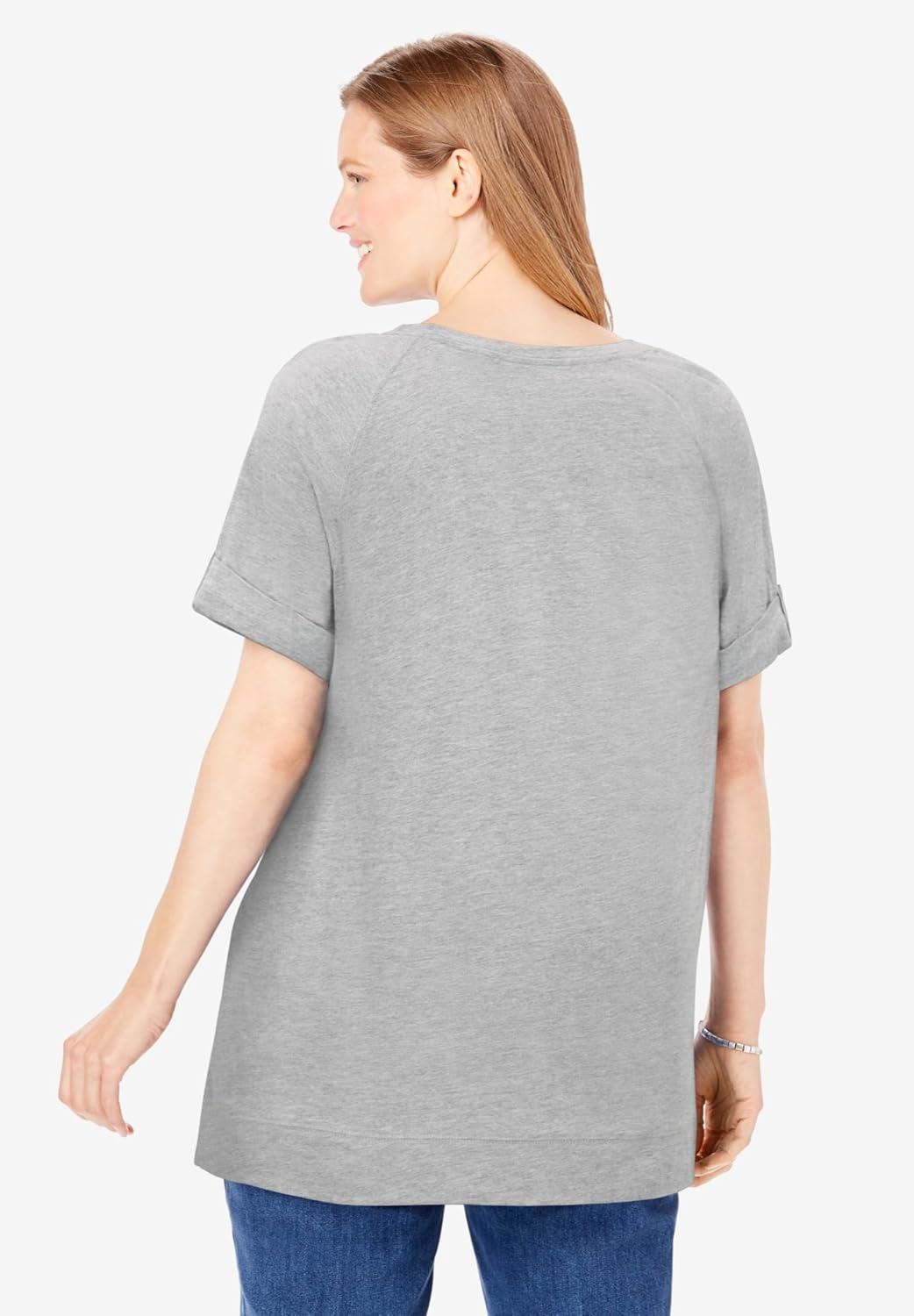 • Woman Within Plus Size Americana Kangaroo Pocket Tee(Heather Grey Americana Butterfly)