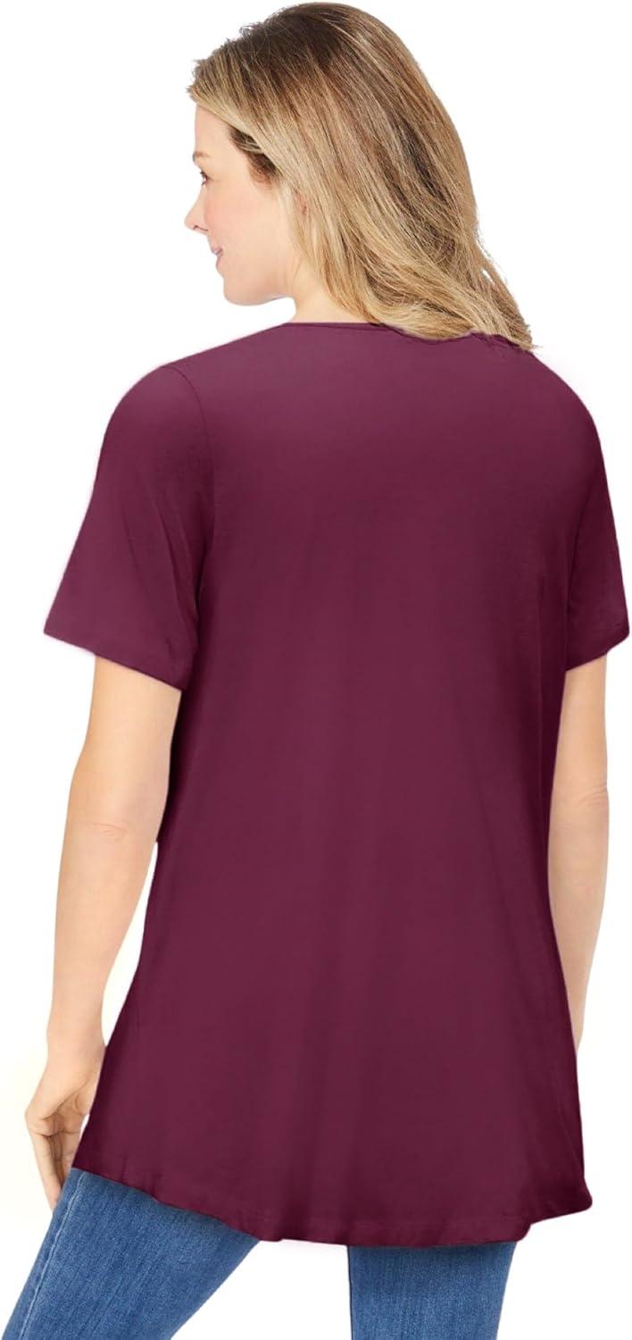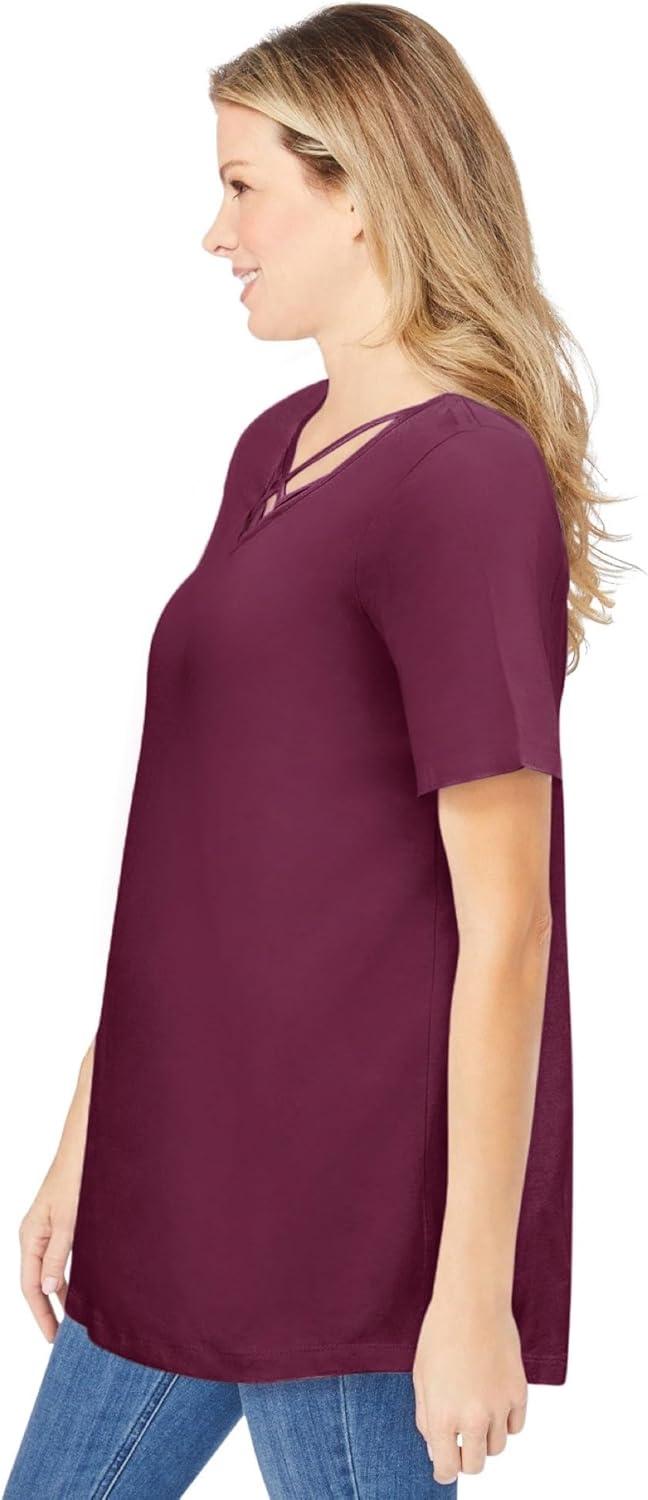 Woman Within Plus Size Criss Cross Tee(Deep Claret)