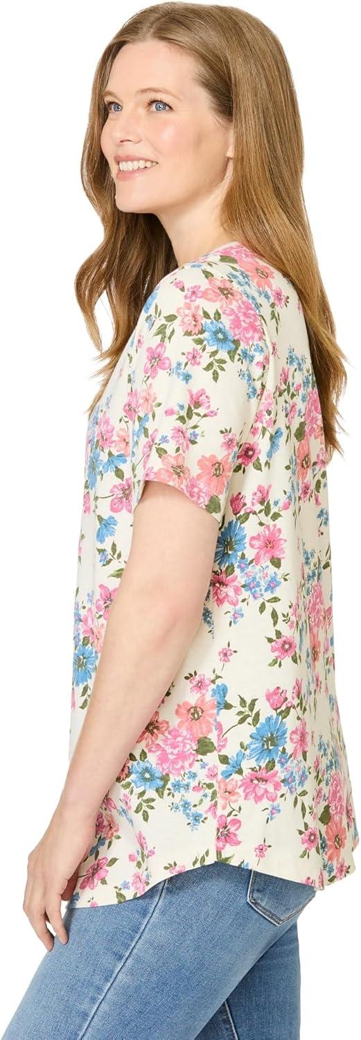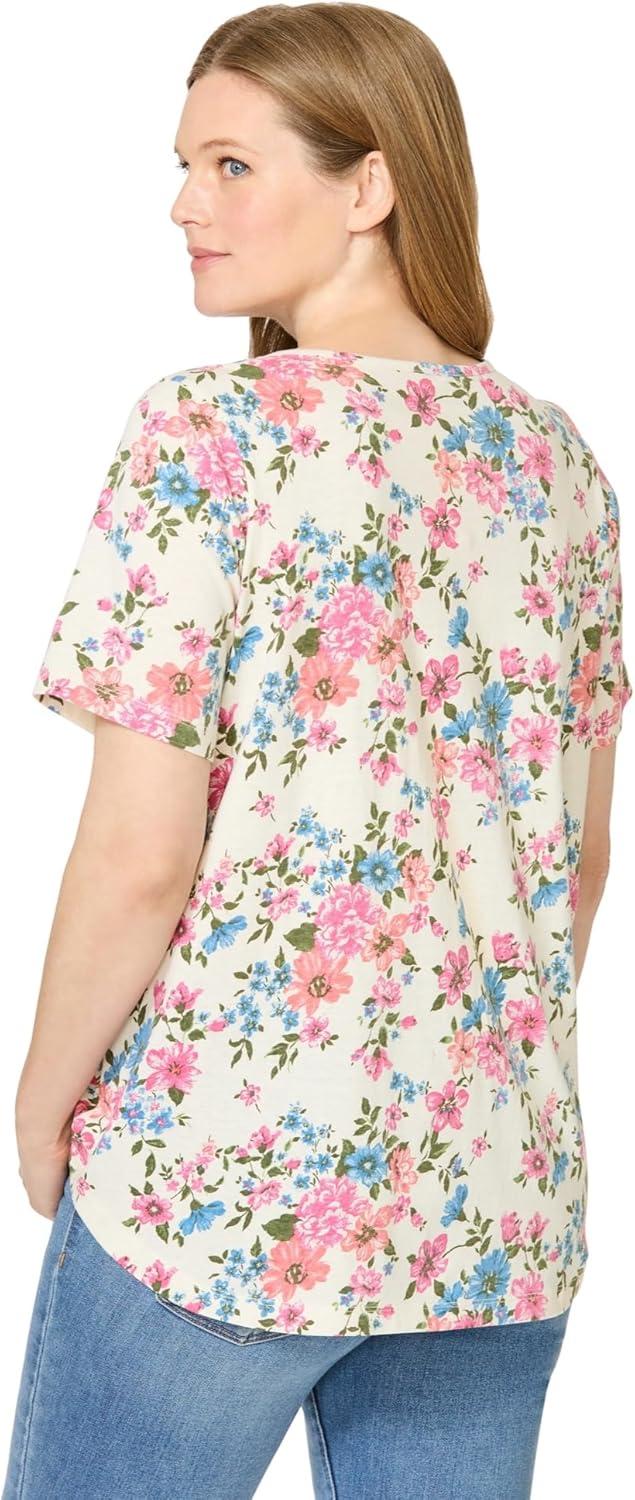 Woman Within Plus Size Criss Cross Tee(Ivory Garden)