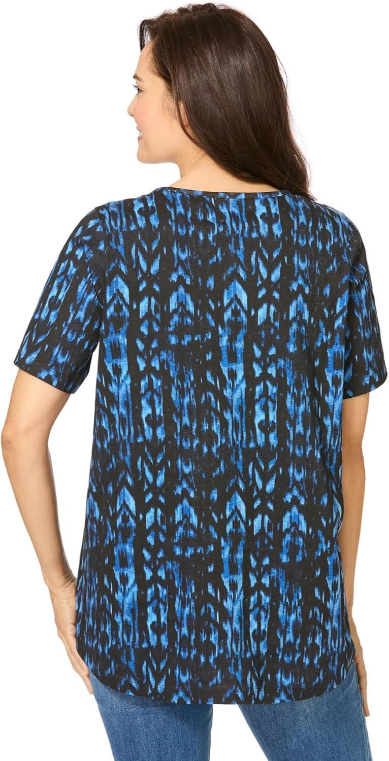 Woman Within Plus Size Criss Cross Tee(Black Vine Blossom)