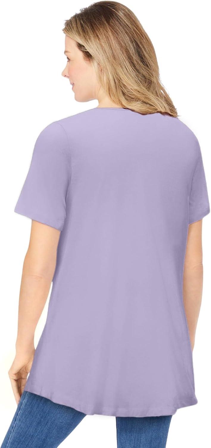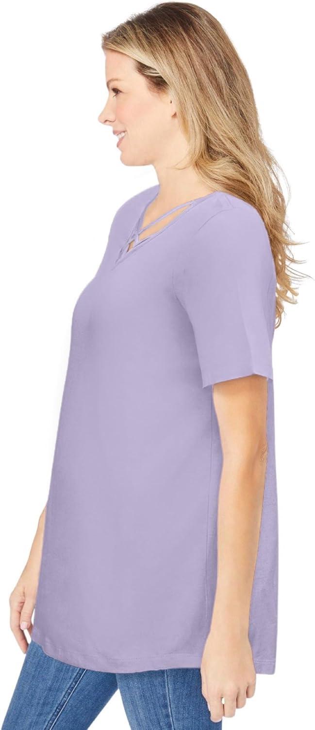 Woman Within Plus Size Criss Cross Tee(Pale Lilac)