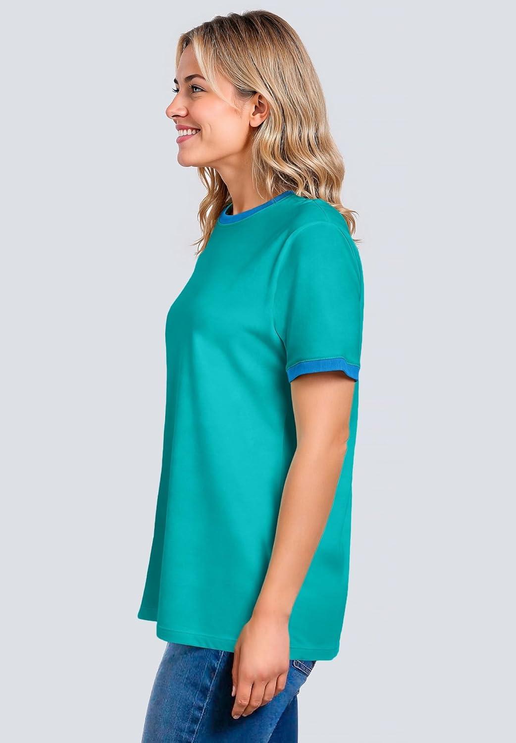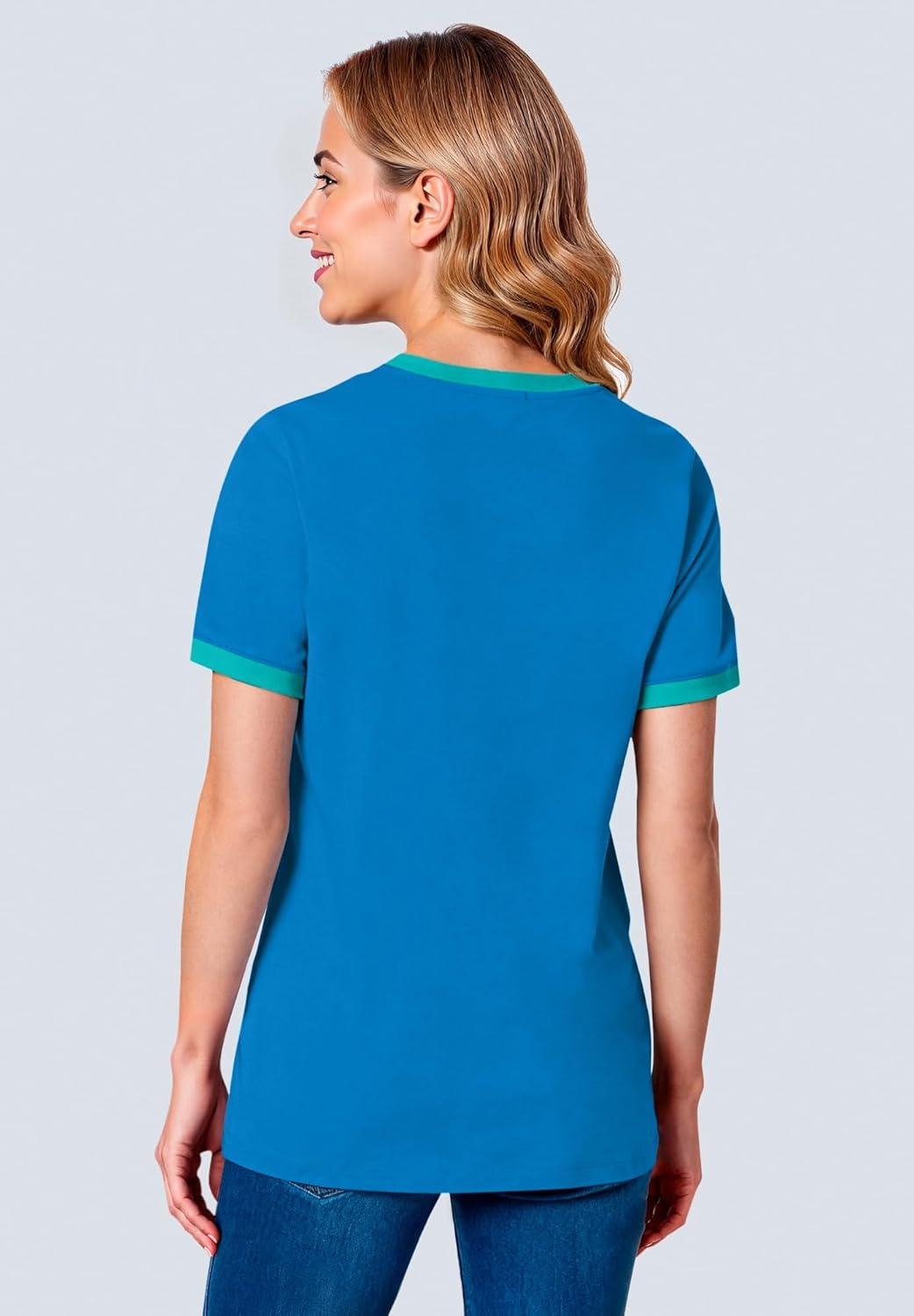 • Woman Within Plus Size Contrast Tee 2-Pack(Pale Seafoam Azure Blue)