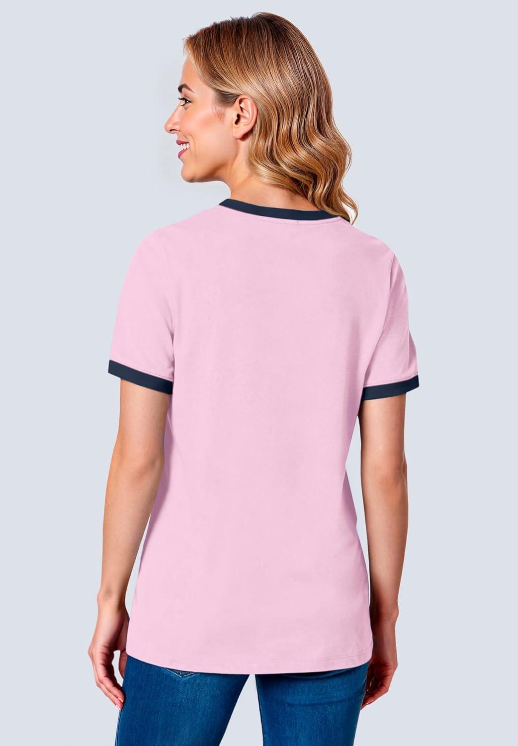 Woman Within Plus Size Contrast Tee 2-Pack(Pink Navy)