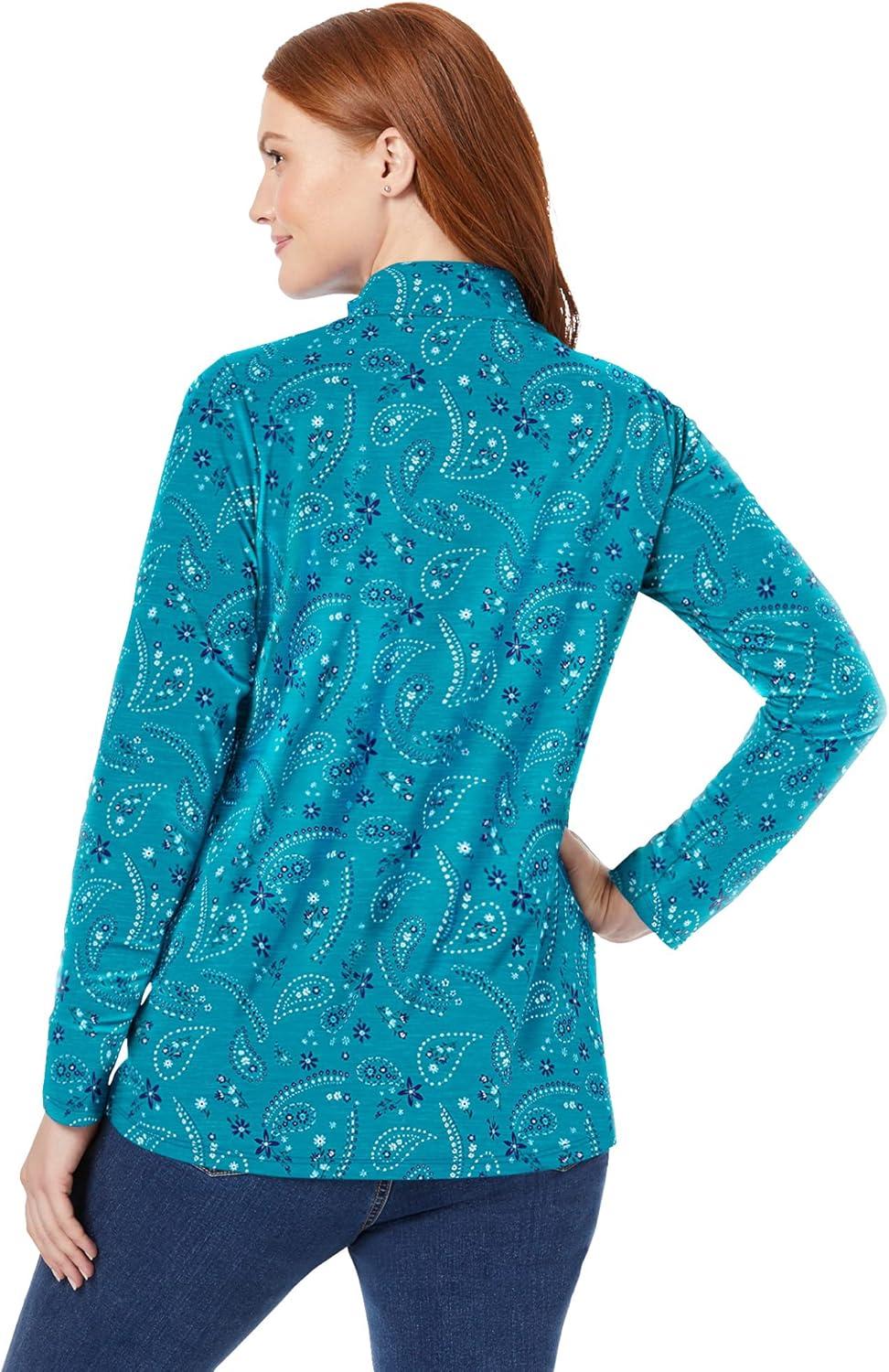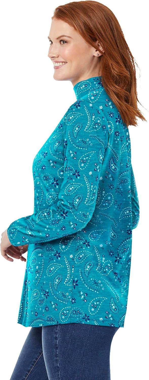 Woman Within Plus Size Perfect Printed Long-Sleeve Mockneck Tee(Seamist Blue Ditsy Bouquet)