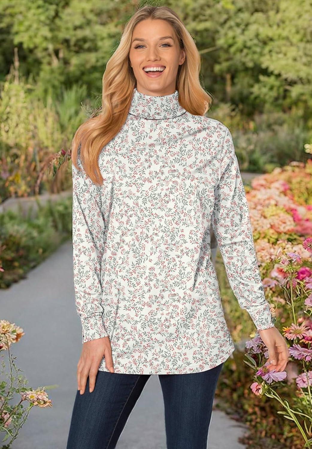 Woman Within Plus Size Perfect Printed Long-Sleeve Turtleneck Tee(Blue Rose Ditsy Bouquet)